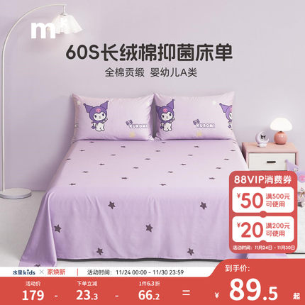 水星儿童60S长绒棉床单单件纯棉母婴A类抑菌被单卡通床品