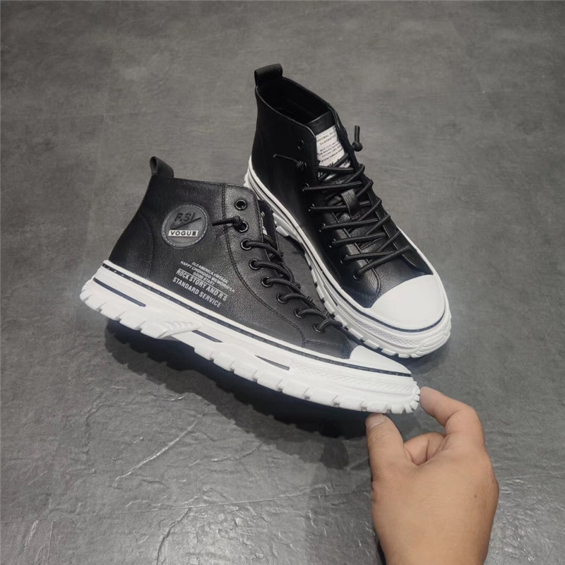 新款马丁头层真皮高帮鞋韩版男士板鞋时尚休闲男鞋潮款靴子男百搭