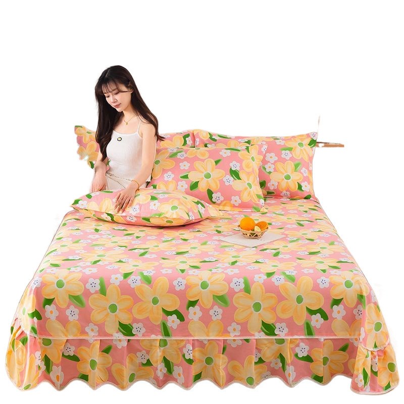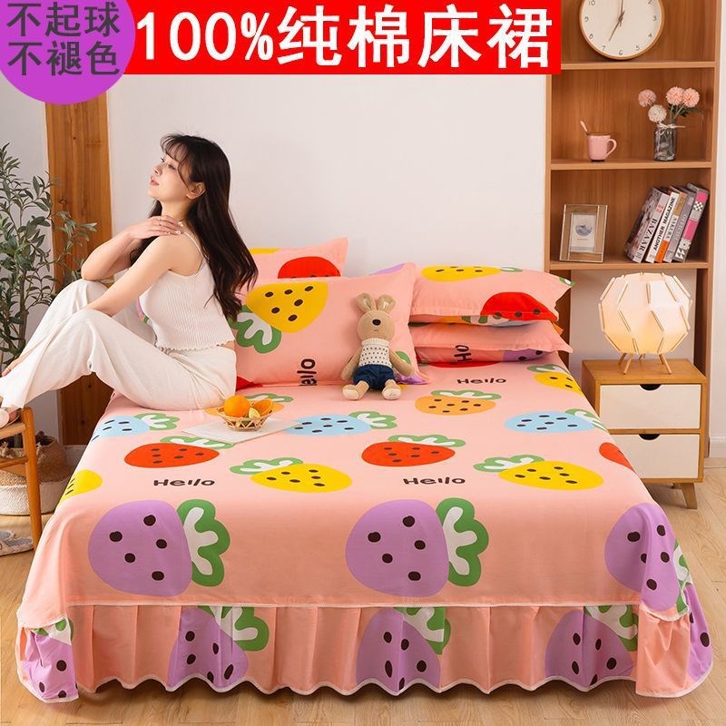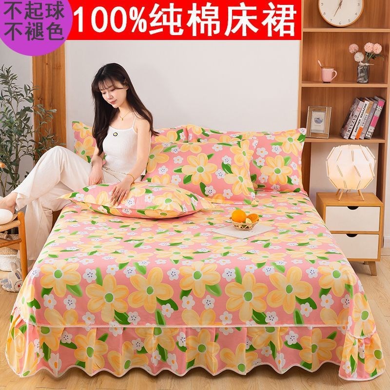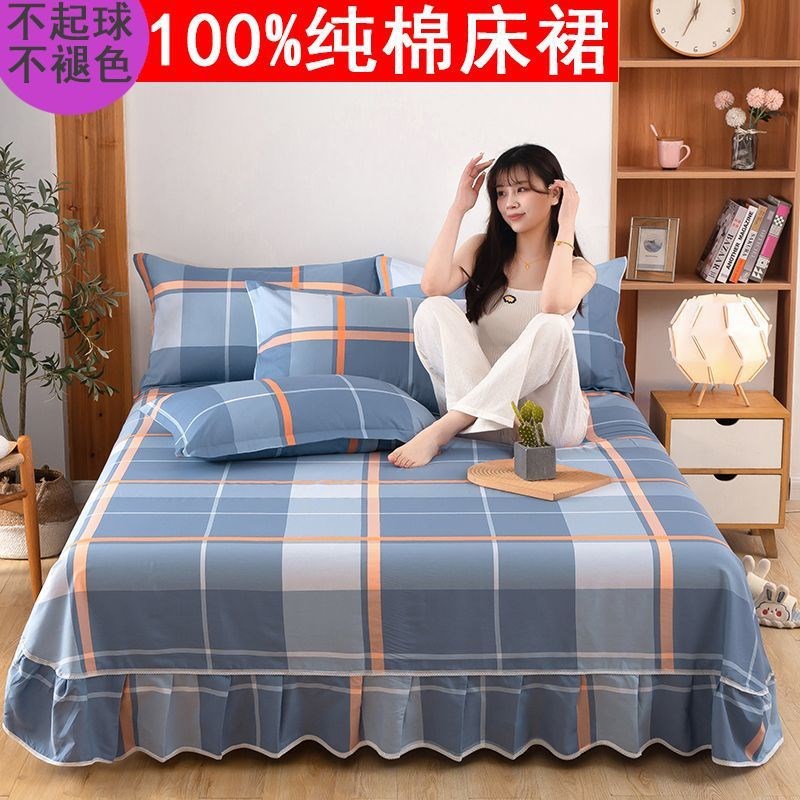 1OO%床裙单件荷叶边薄款单人1.0米1.5床单双人1.8米2.0米床罩