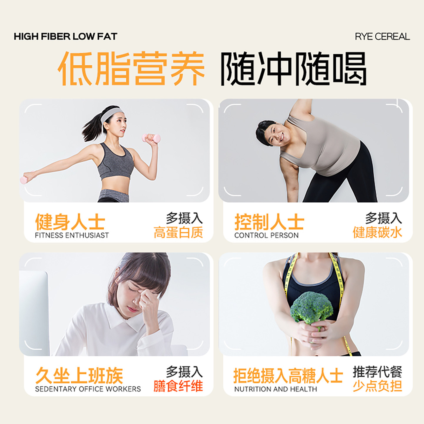 高纤低脂黑麦片无糖精燕麦片代餐