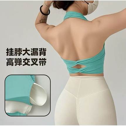 运动内衣女带胸垫挂脖交叉瑜伽美背跑步防震聚拢普拉提健身文胸