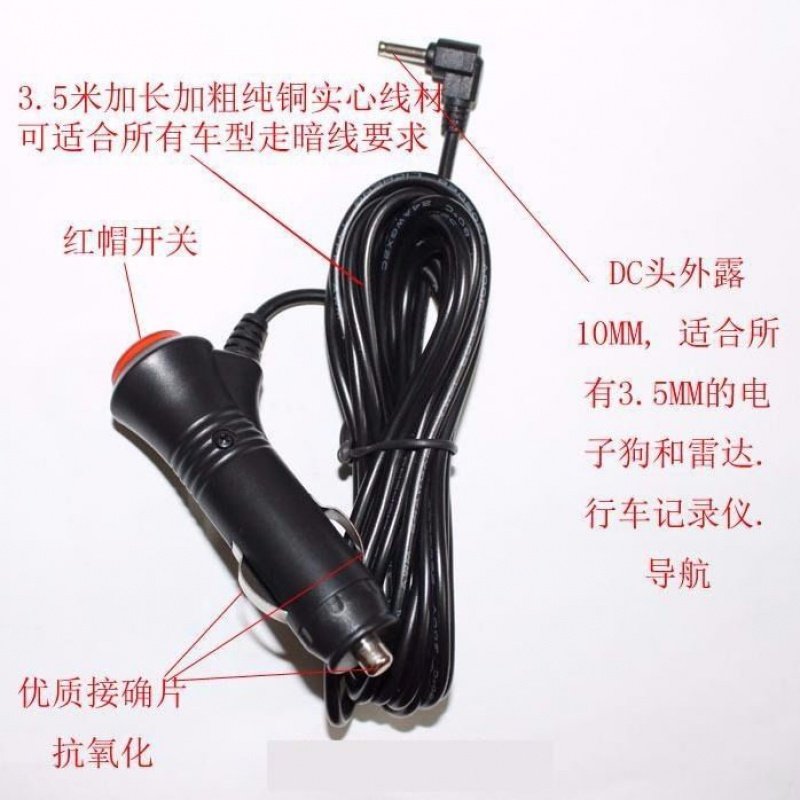 通用电子狗车充线征途善领车载电源线12V圆头充电线3.5MM插头