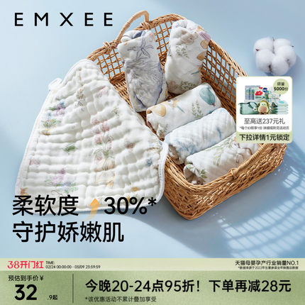 嫚熙口水巾婴儿毛巾纱布小方巾a类纯棉拍嗝巾刷牙防水围兜洗漱