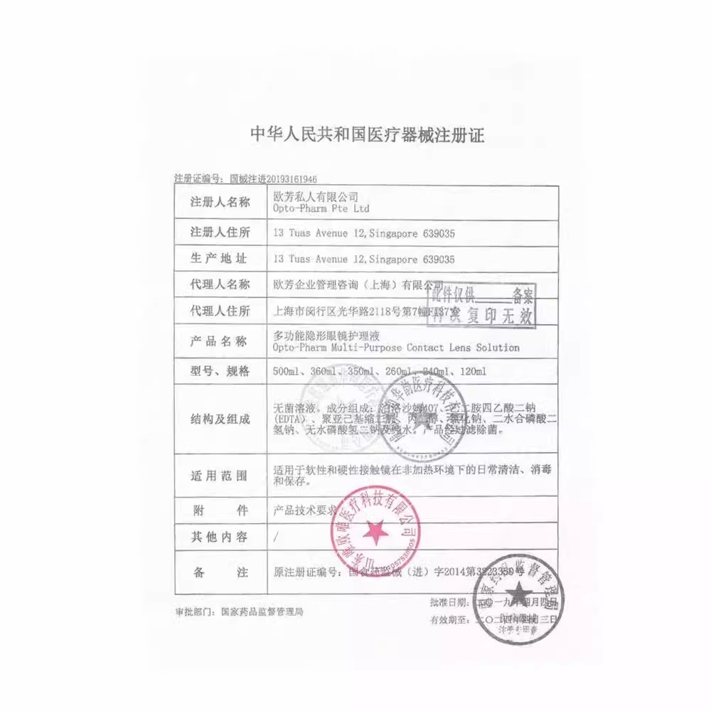 欧普康视镜特舒润滑液15ml硬性隐形眼镜润眼液OK镜用角膜护理液TF