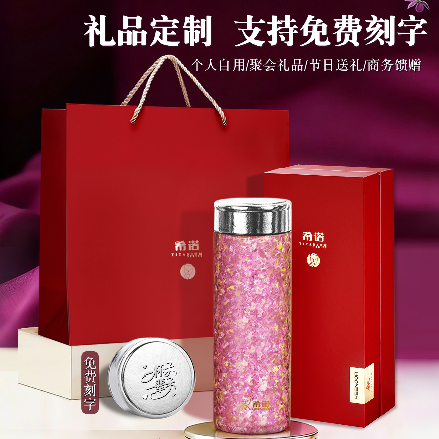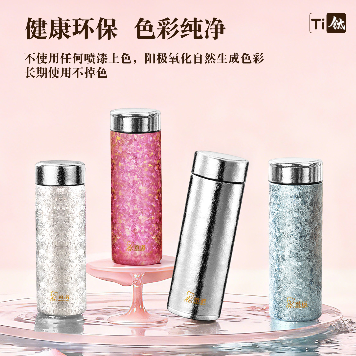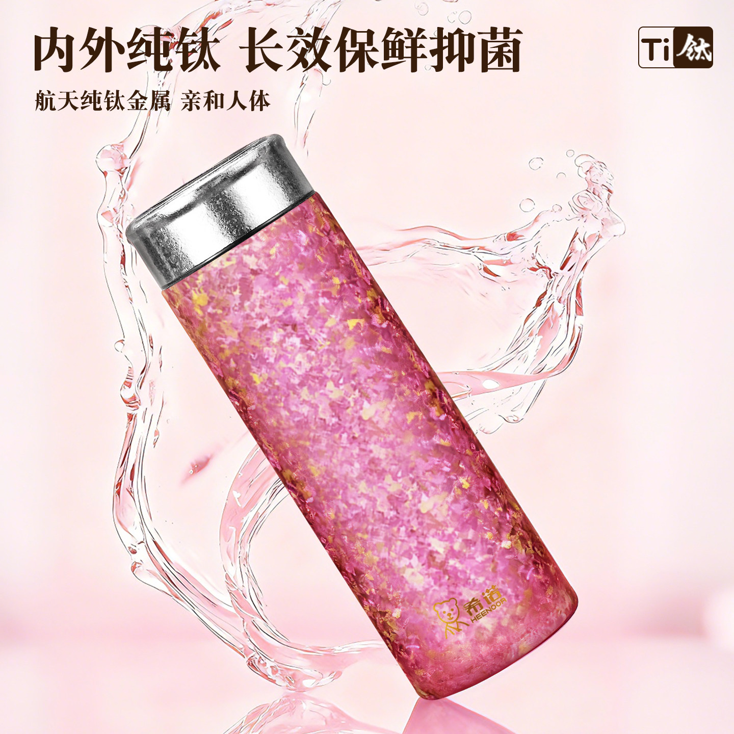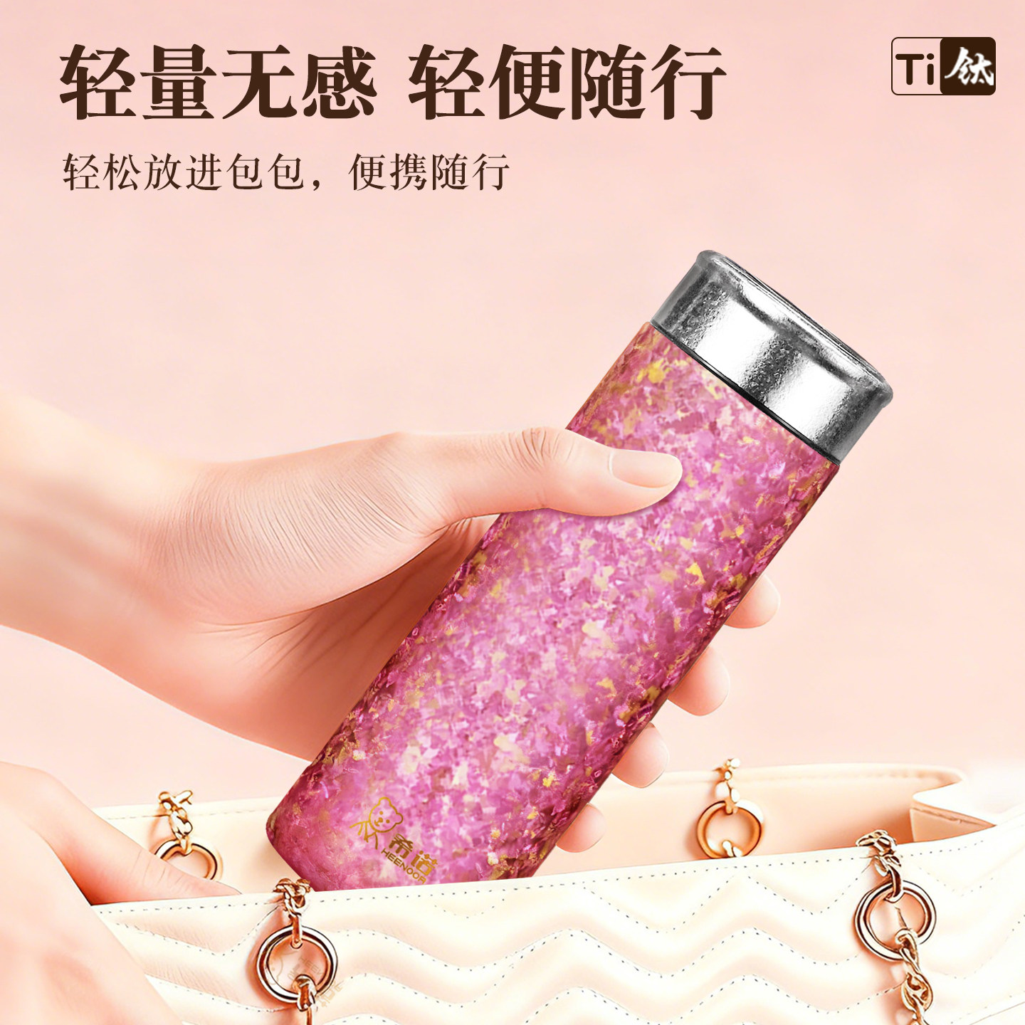 希诺纯钛保温杯女士便携高颜值户外露营水杯焖茶泡茶杯子高端钛杯