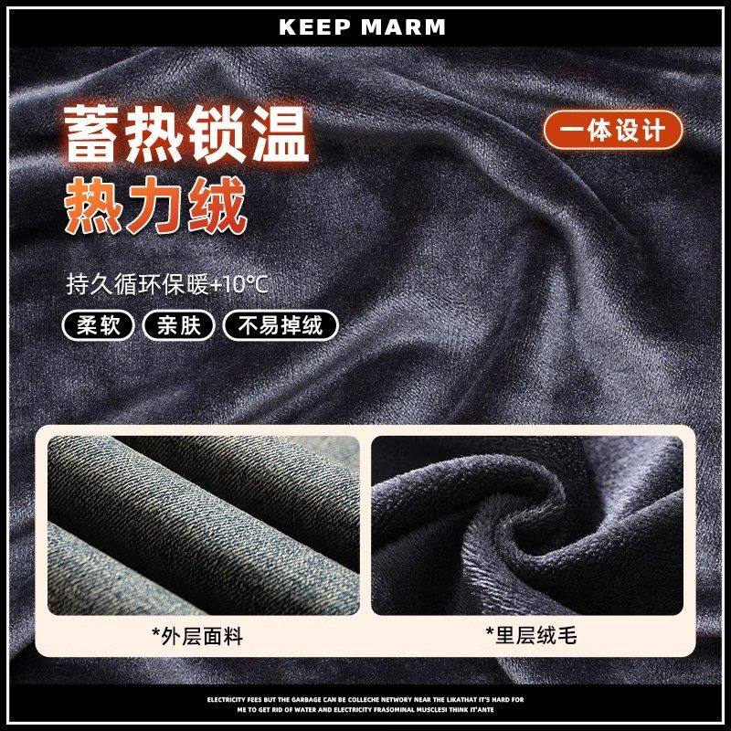 Yishion以纯官方时尚正品复古水洗牛仔裤男冬季加绒修身弹力长裤