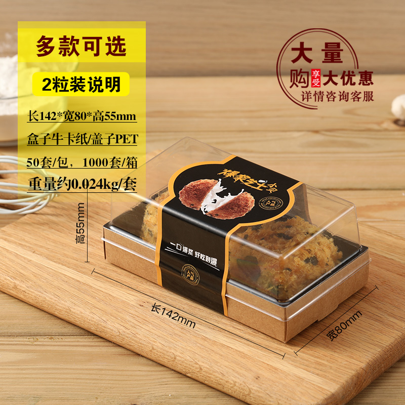爆浆芝士小贝盒子一次性肉松小贝3粒装透明长方形蛋糕包装盒高档