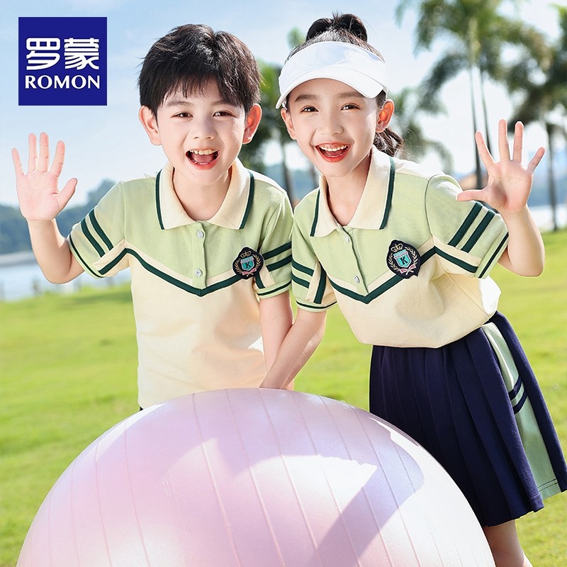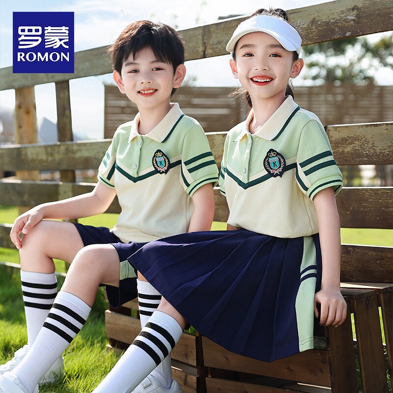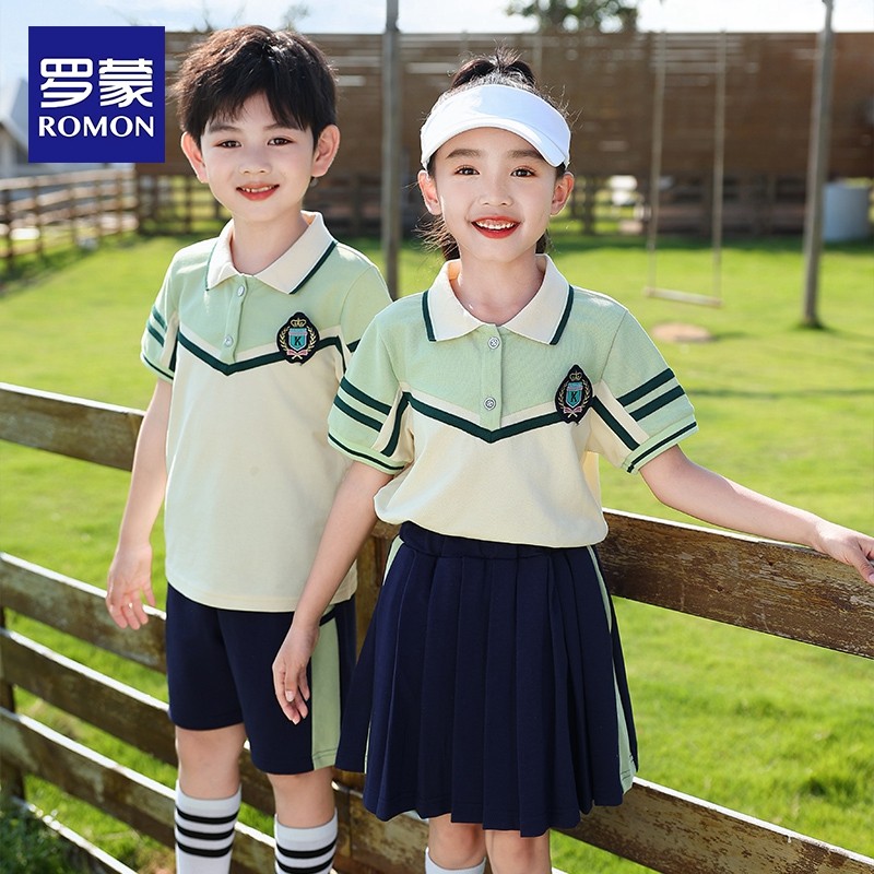 罗蒙儿童新款小学生夏季班服套装学院绿色短袖套装幼儿园园服潮流