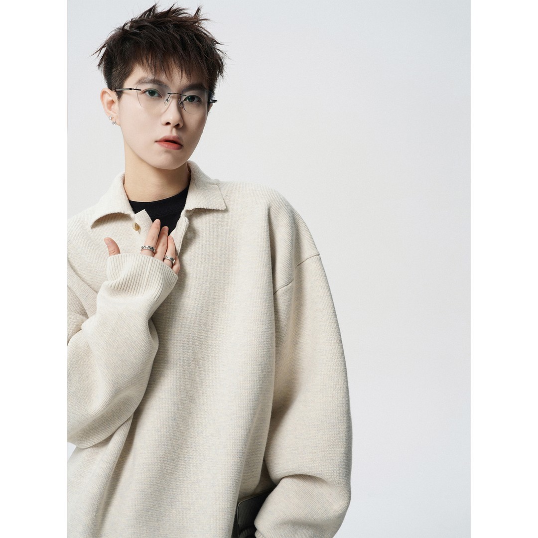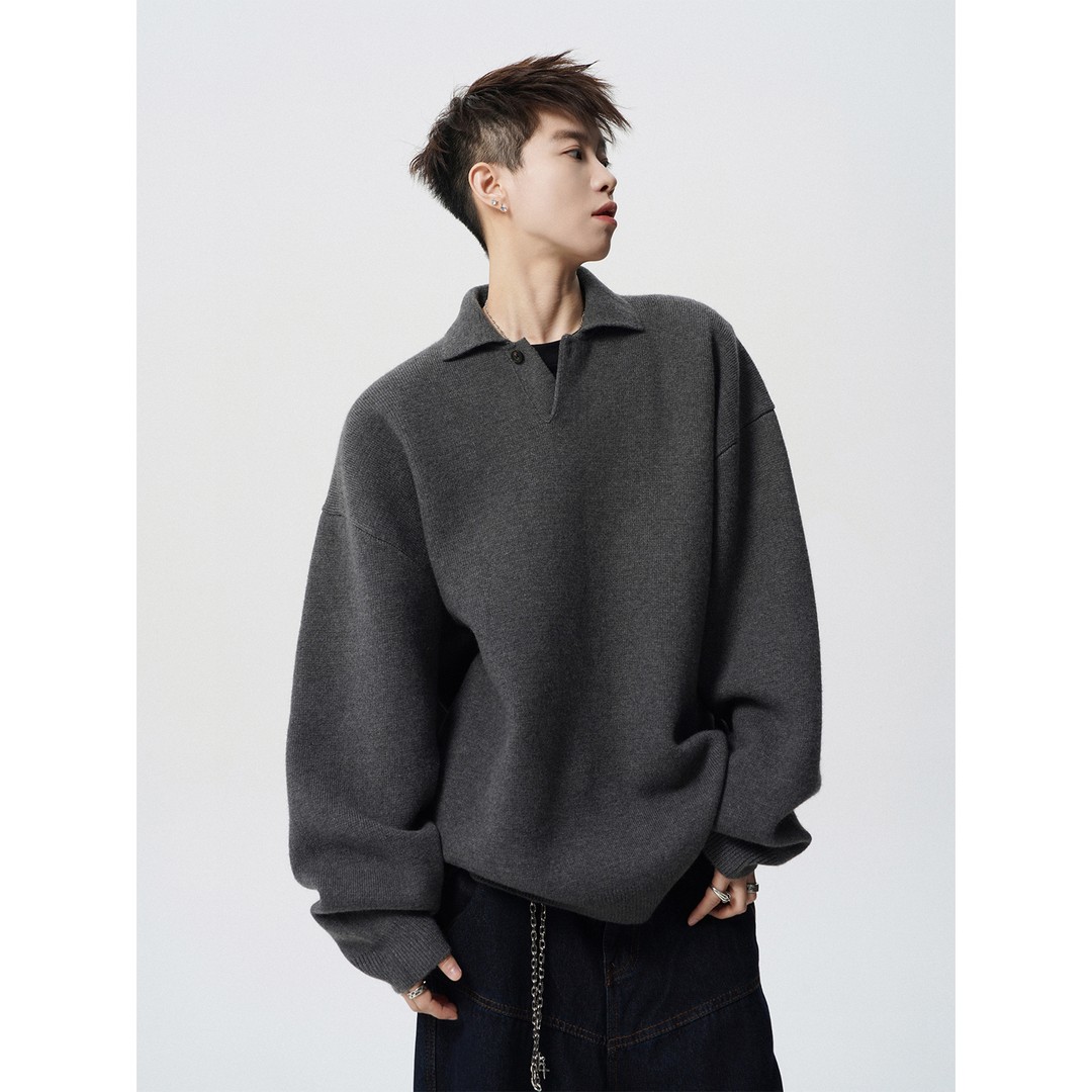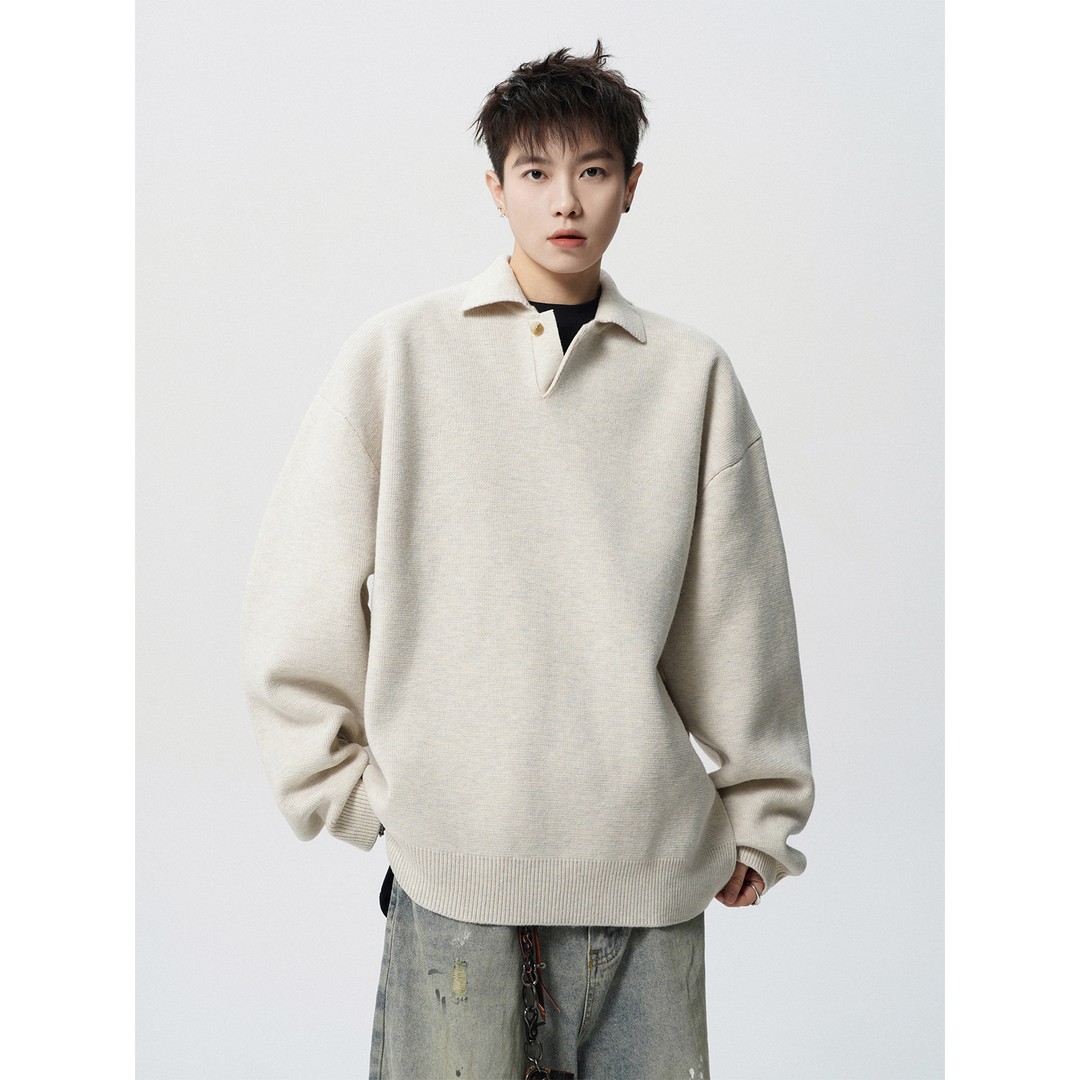 加大码300斤高级感POLO领毛衣外套男女春潮牌慵懒风bf针织衫上衣