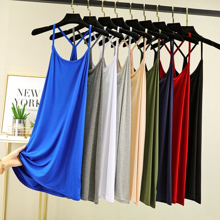 夏季莫代尔美背背心吊带裙Y字中长款吊带百搭女打底衫包臀裙大码