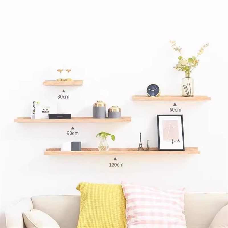 上墙一字隔搁板窄置物架客厅餐厅装饰品摆件架原木风壁挂展示书架