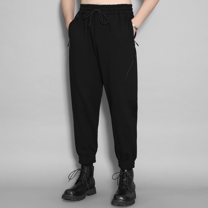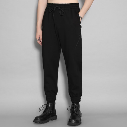 潮牌暗黑系拉链口袋束脚针织卫裤