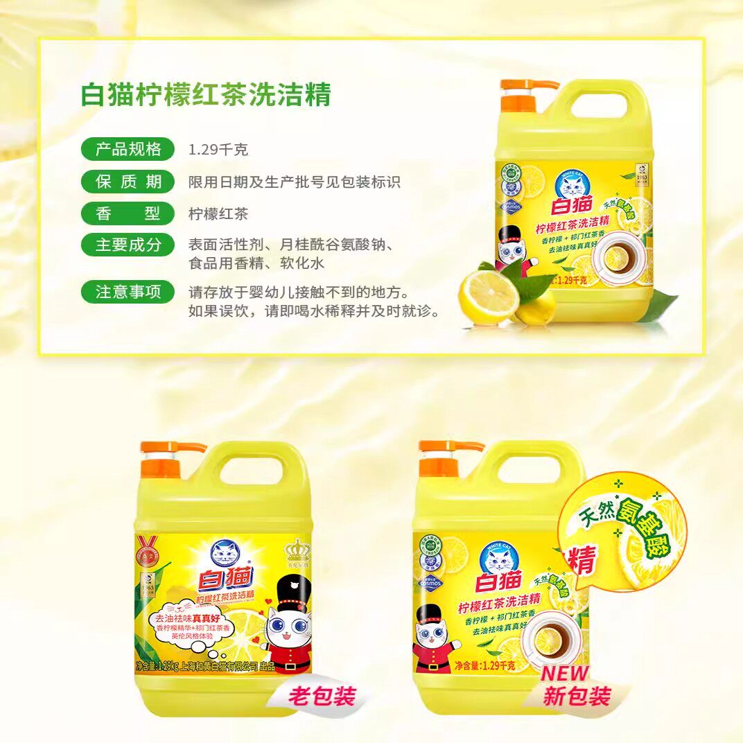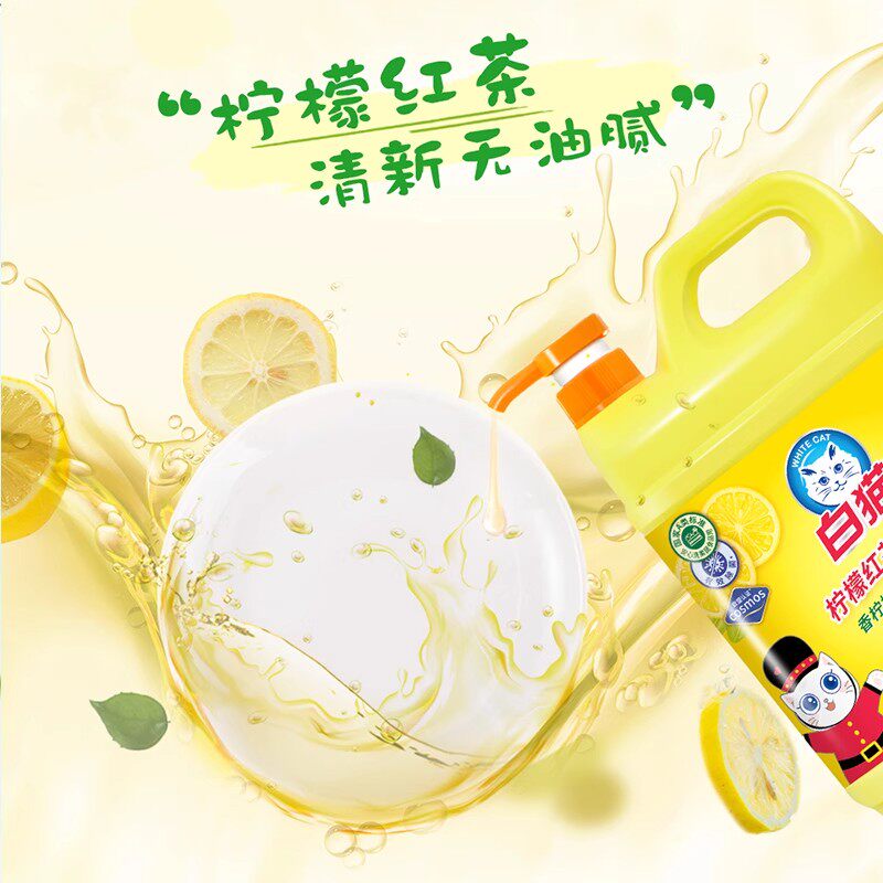 白猫洗洁精柠檬红茶洗碗液家用餐饮果蔬按压瓶大桶实惠家庭装2kg