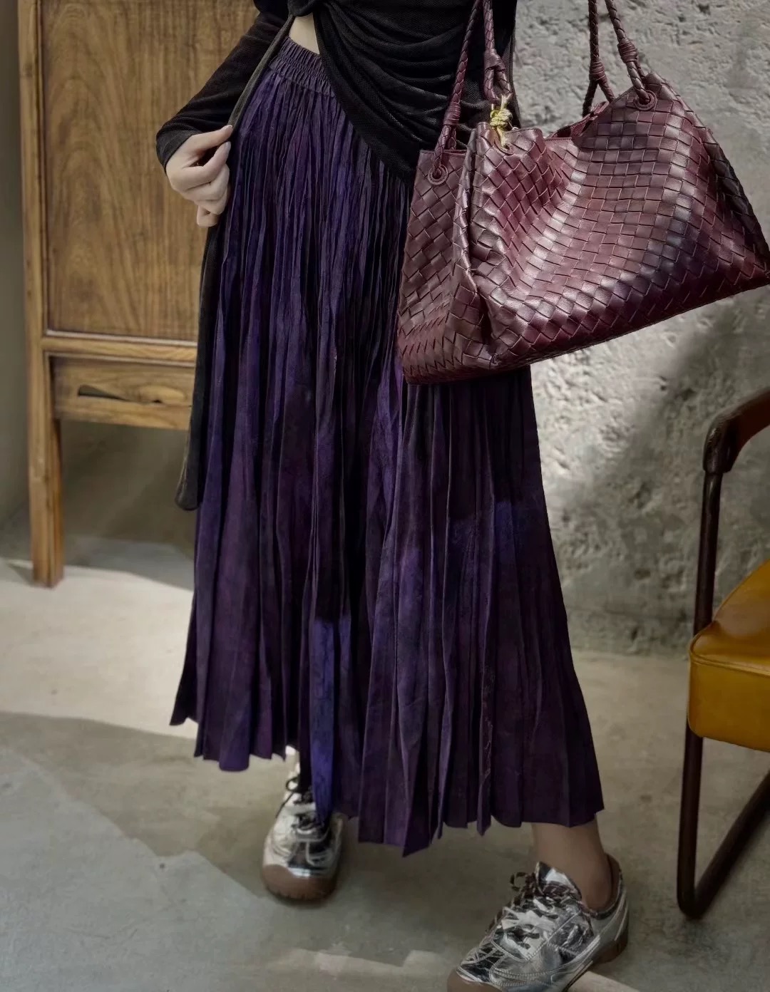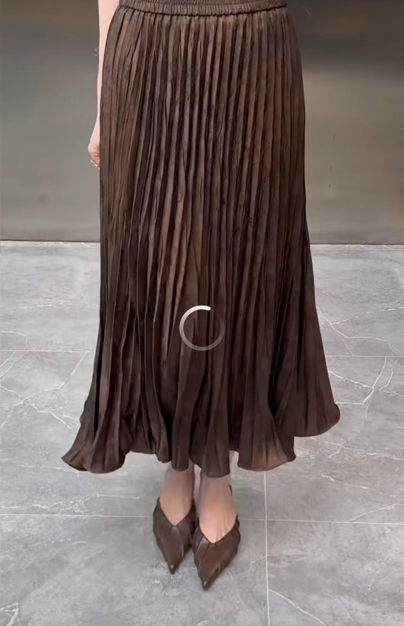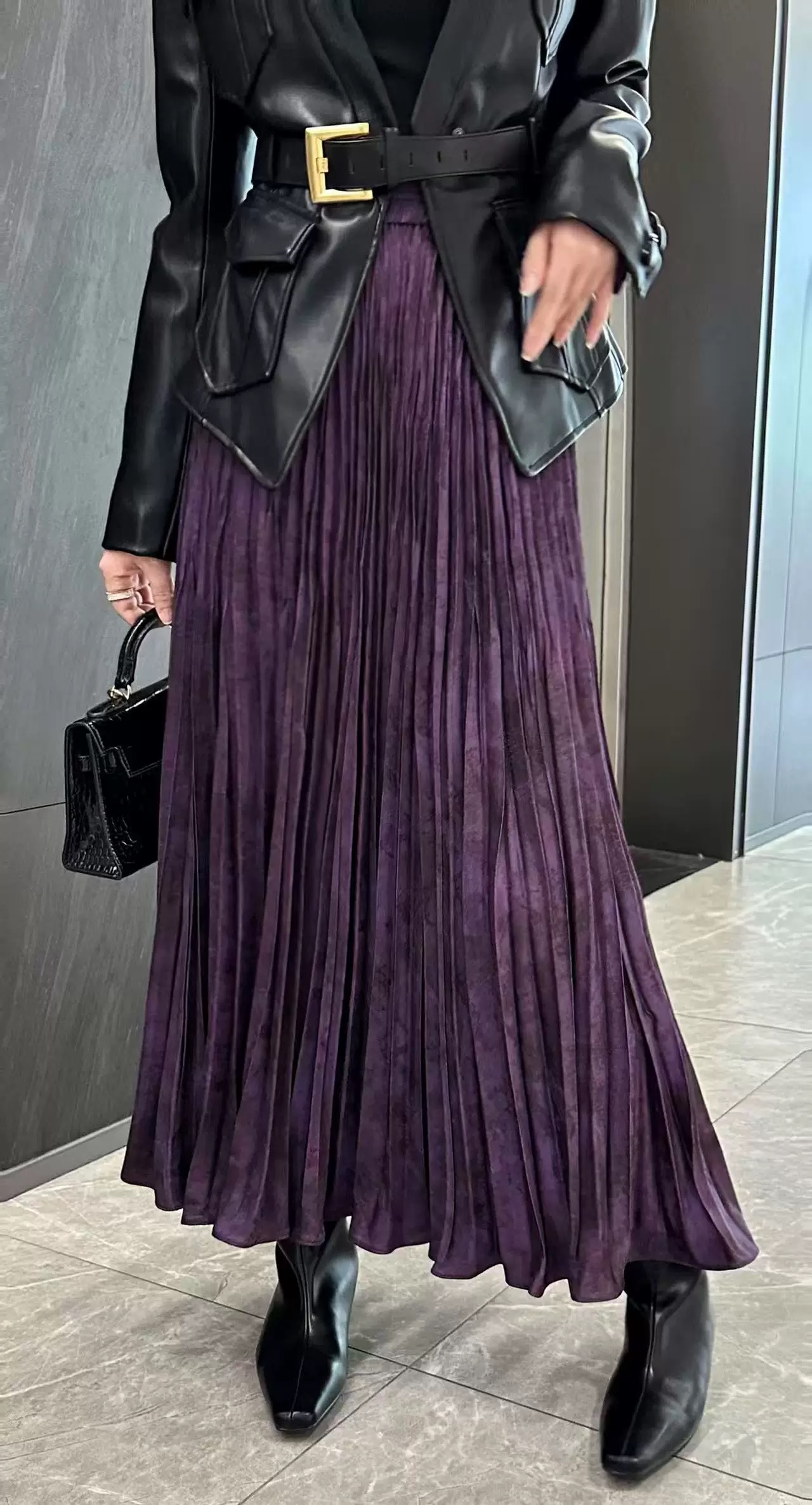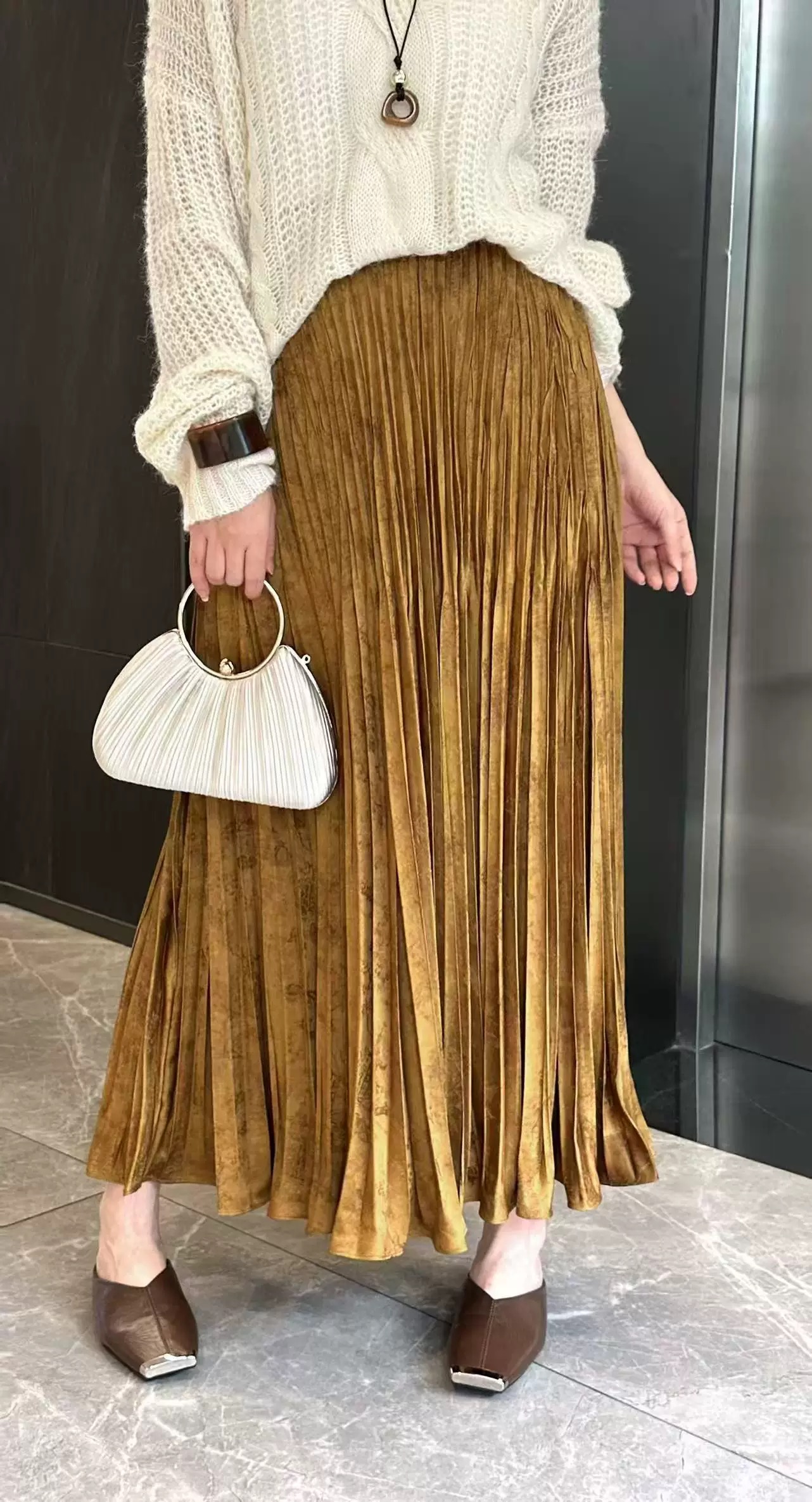 欧货正品2025早秋新款潮流高级褶皱百褶裙女A字半身裙大摆长裙女