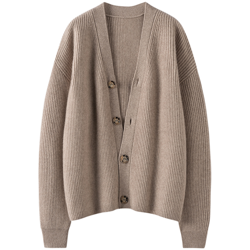 无可替代!太好穿了~加厚V领山羊绒开衫女纯羊绒毛衣针织开衫外套