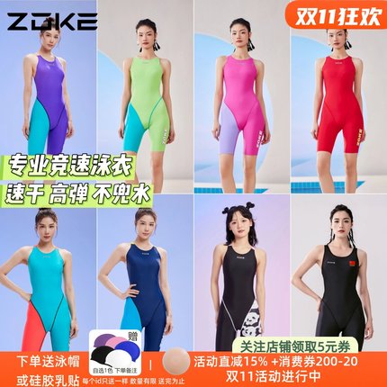 洲克新品泳衣专业竞速训练五分连体游泳衣女zoke泳衣比赛速干显瘦