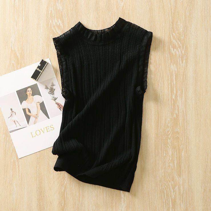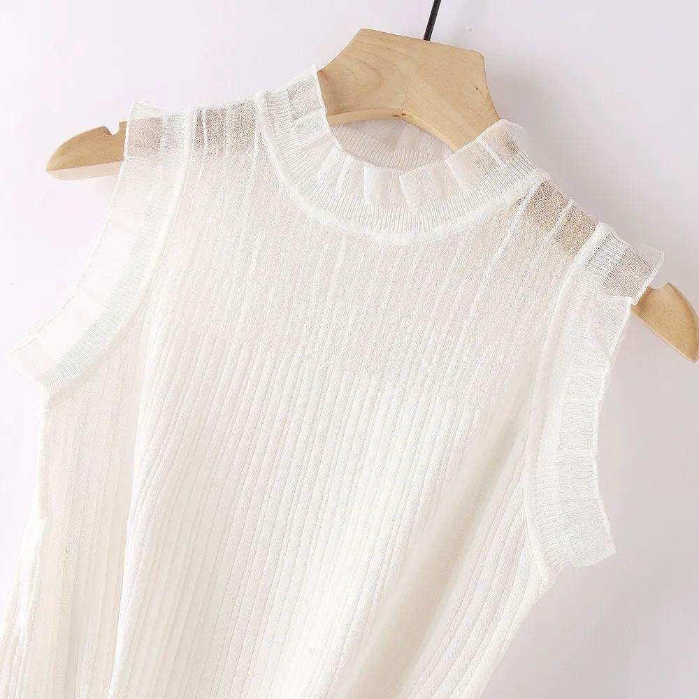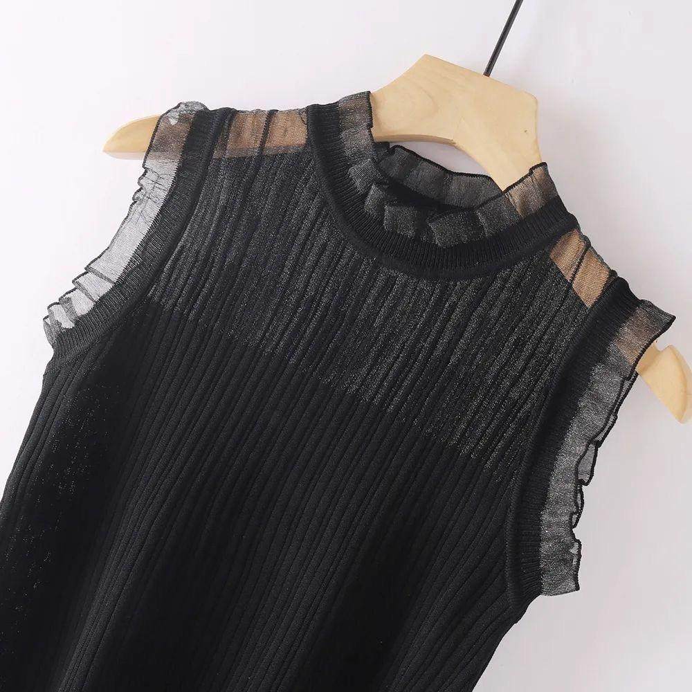 2024新款冰丝吊带背心女内搭木耳边蕾丝无袖上衣镂空外穿打底衫女