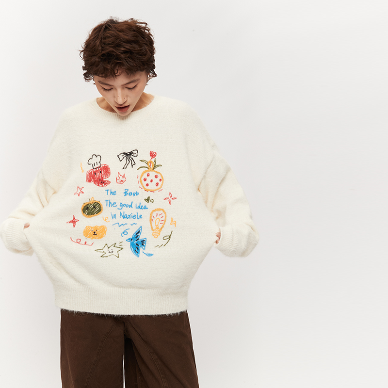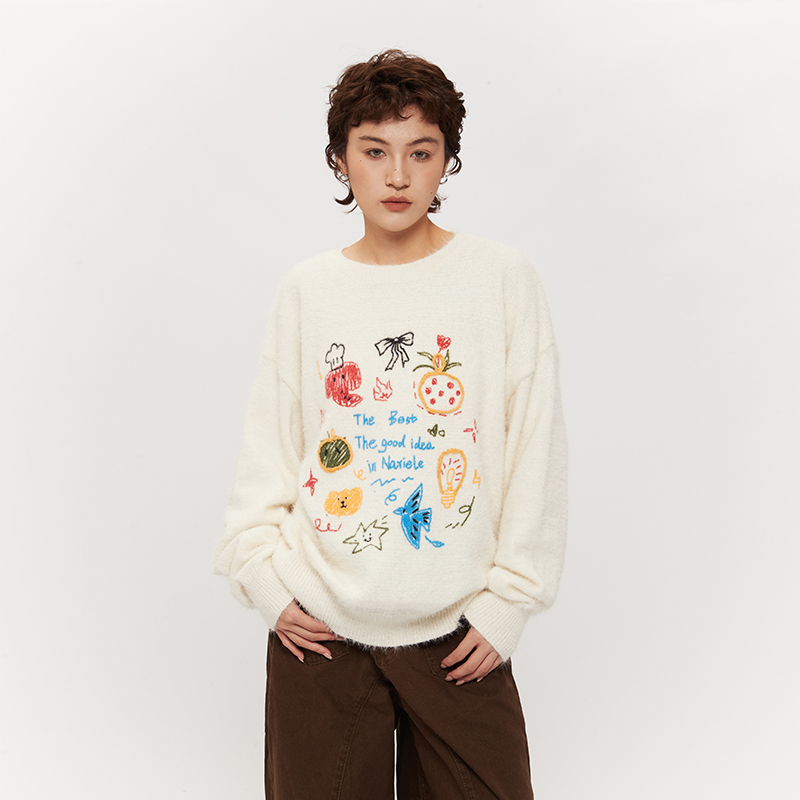 AIRHOOD 2025秋冬季美式复古卡通圆领毛衣女宽松套头慵懒风针织衫