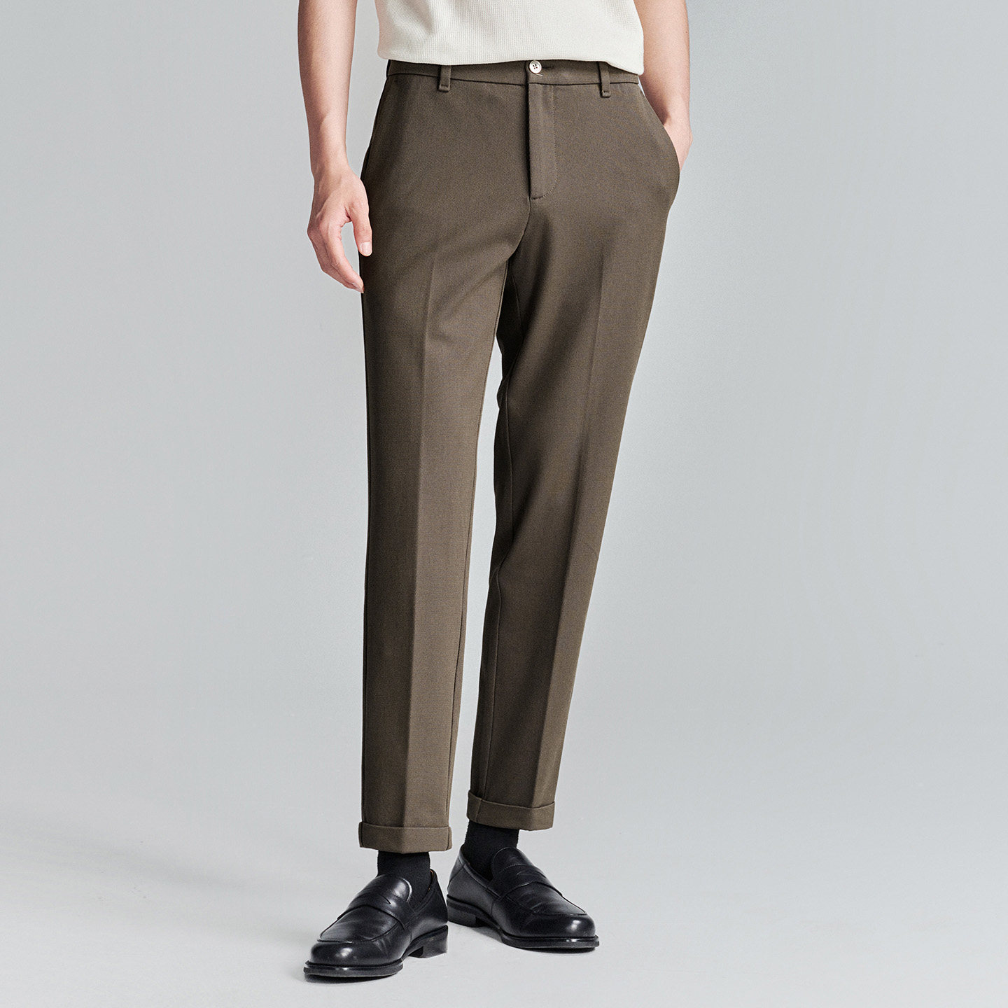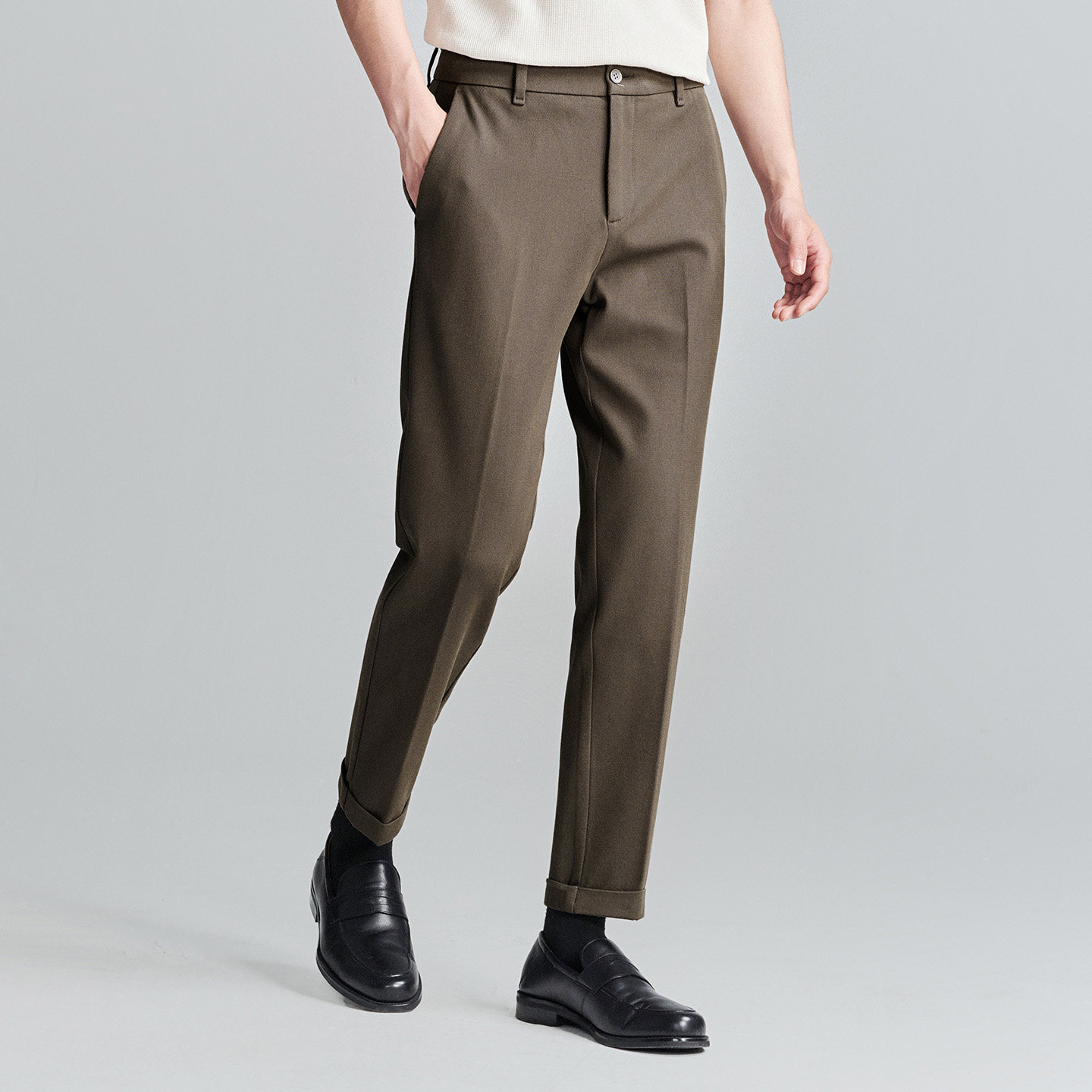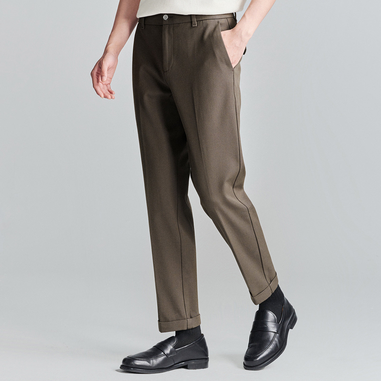 报喜鸟秋季新款时尚休闲男士百搭质感休闲裤纯色九分裤谷糠色裤子