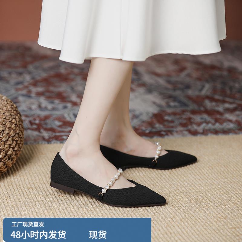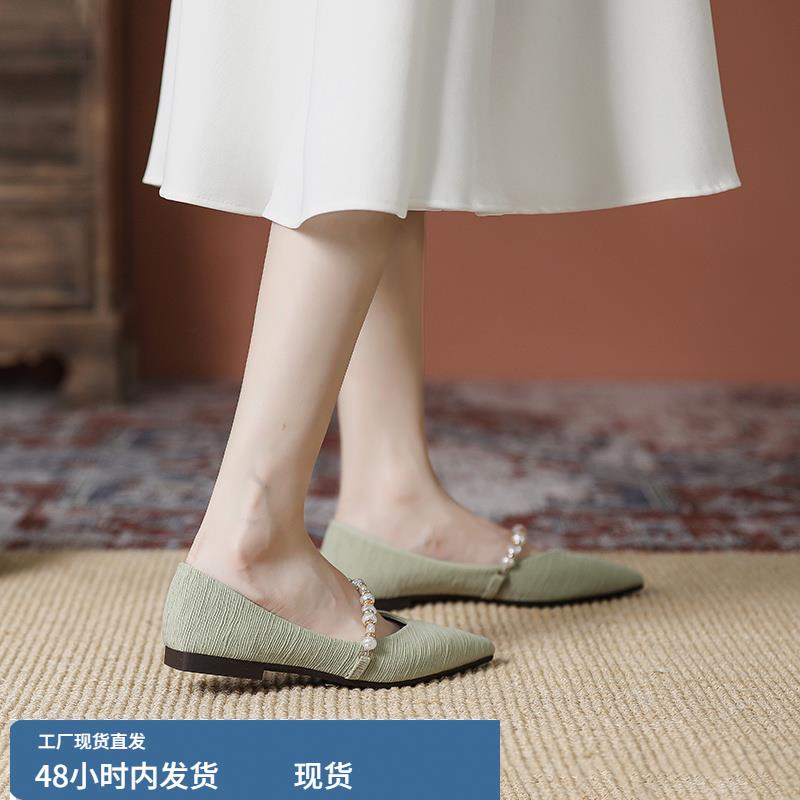 尖头单鞋女夏平底2024新款法式玛丽珍软底瓢鞋浅口大码女鞋41一43