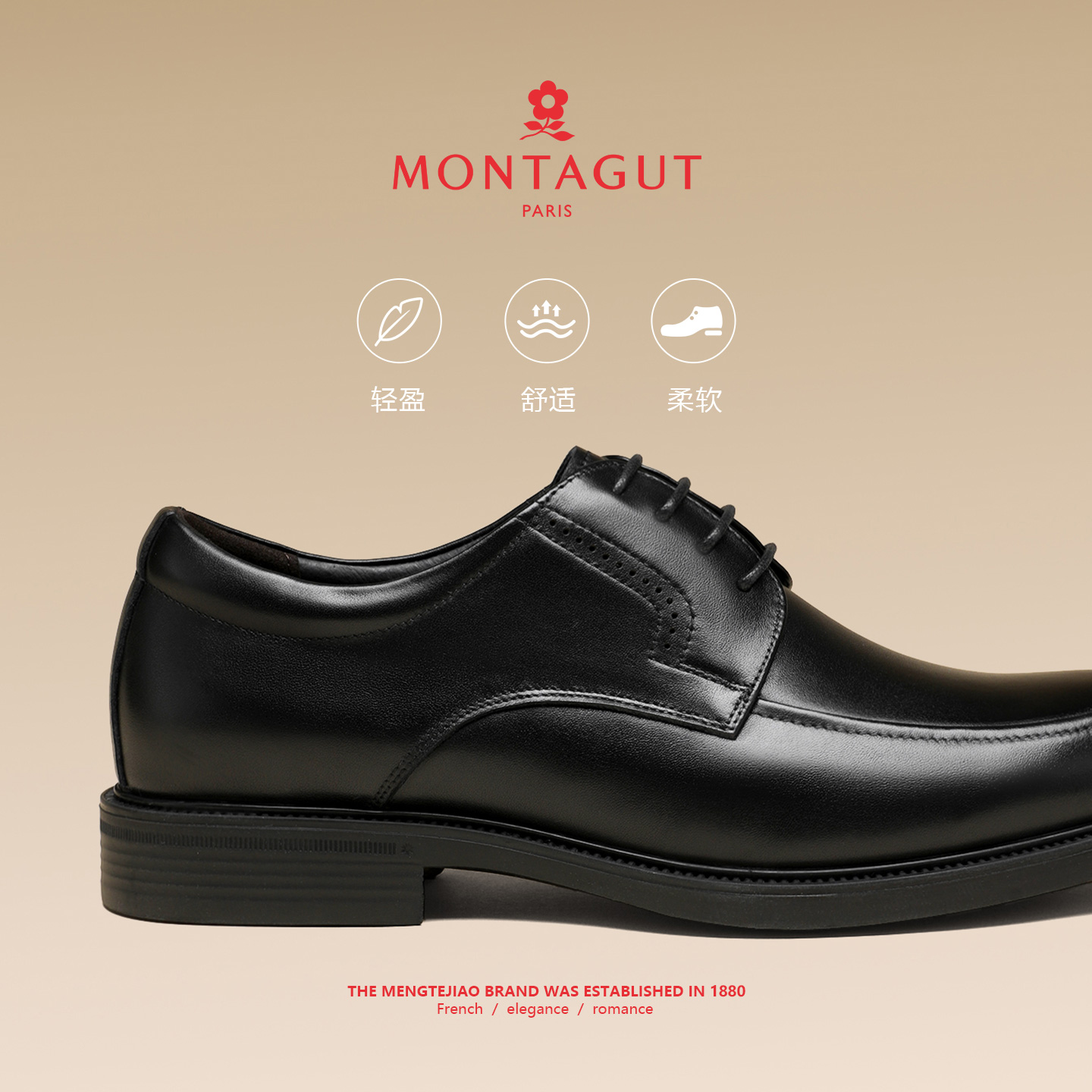 梦特娇男士高档皮鞋秋冬休闲商务软底舒适上班正装德比结婚新郎鞋