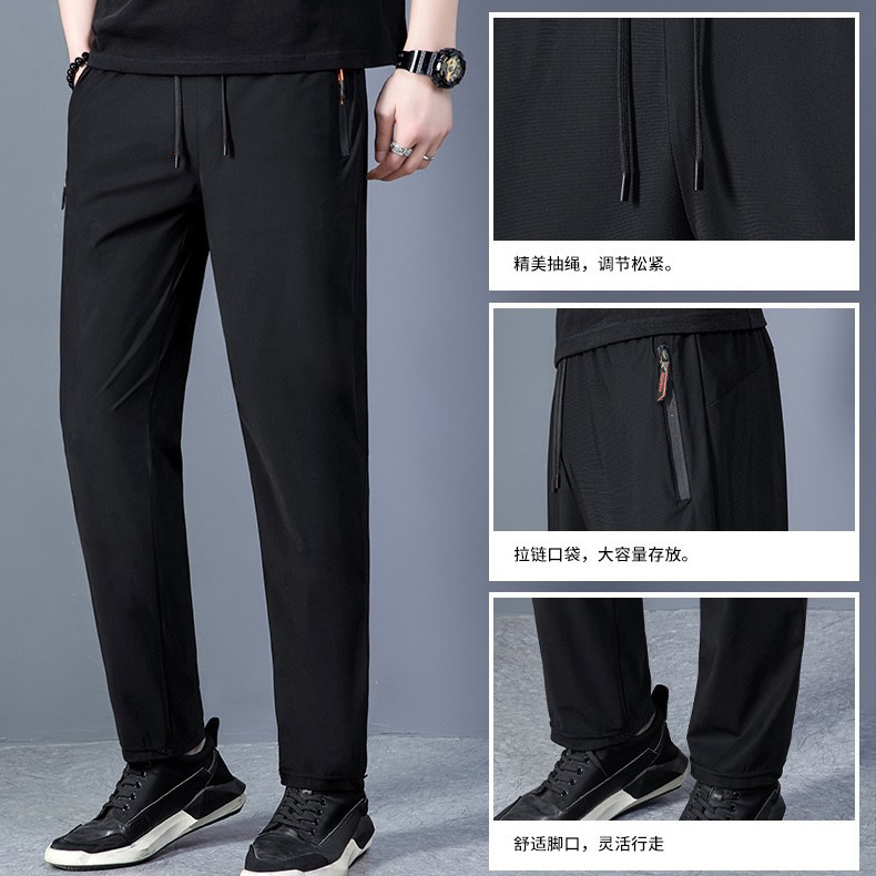 pants休闲裤男士夏季弹力直筒束脚运动长裤商务速干中青老年裤子
