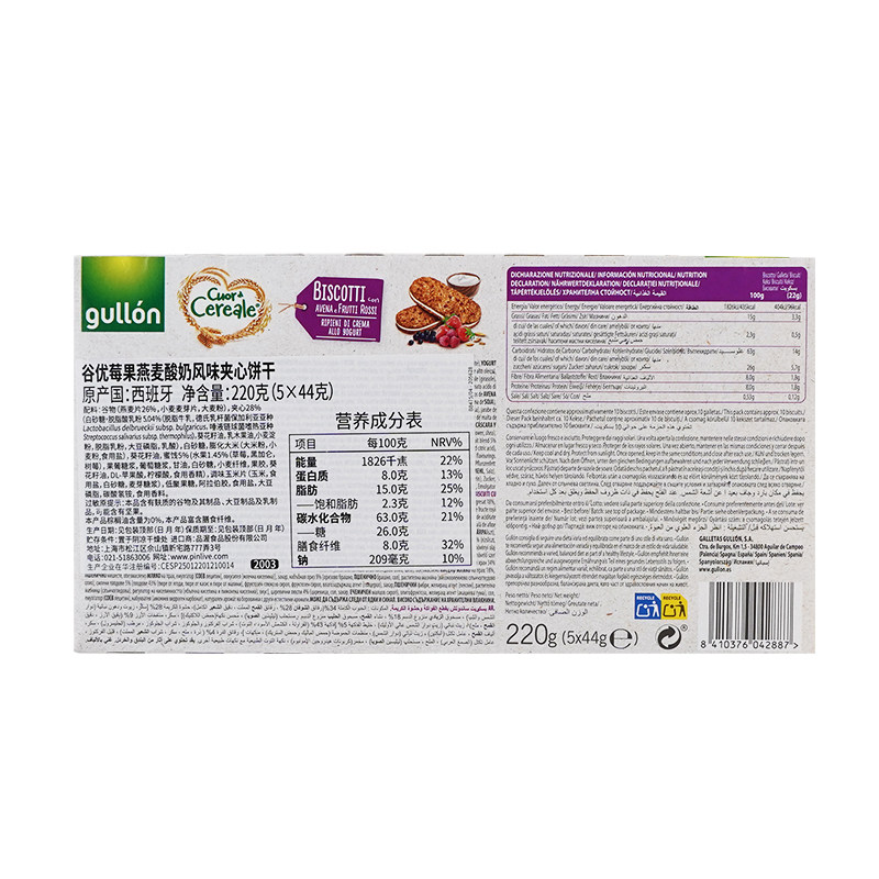【进口】西班牙谷优莓果燕麦酸奶夹心饼干代餐零食食品