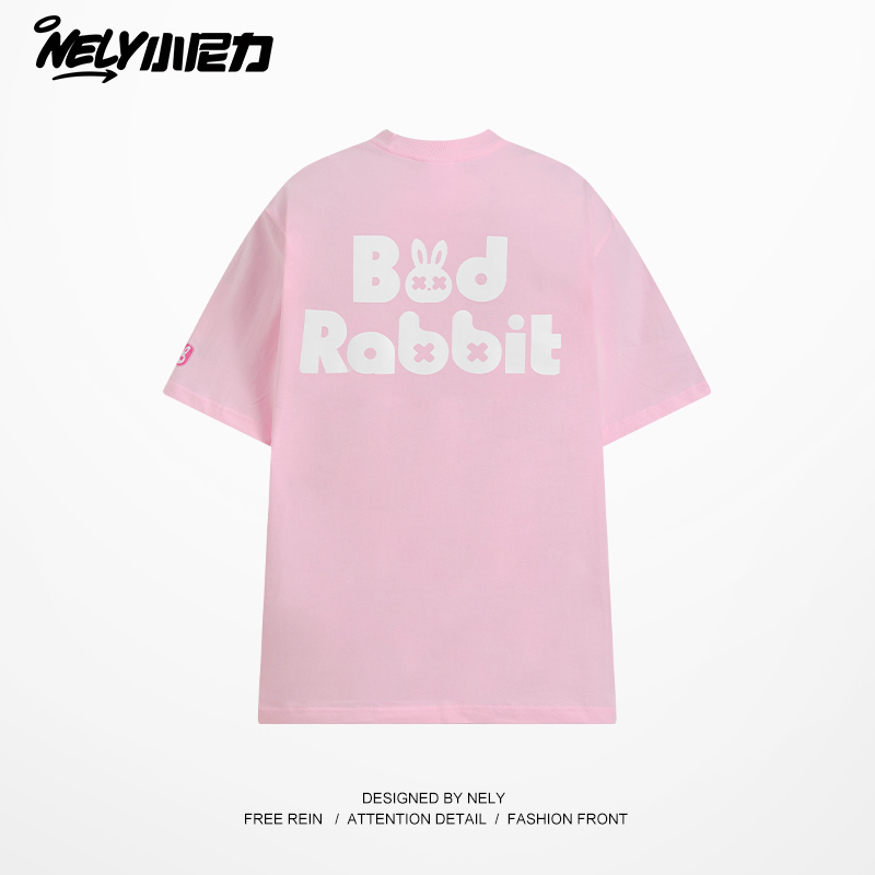 美式复古vintage兔子纯棉短袖t恤女男2025新款潮牌宽松半袖上衣夏