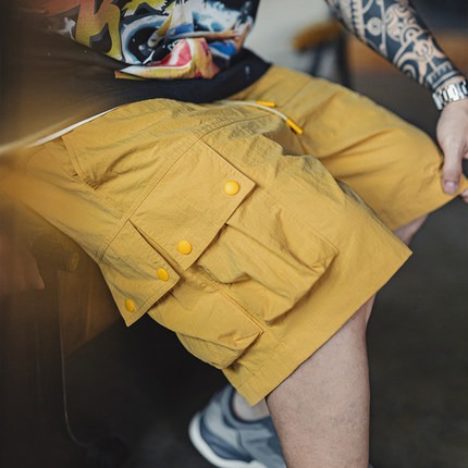 马登工装山系多口袋短裤黄色机能速干美式复古外穿薄款五分裤男夏