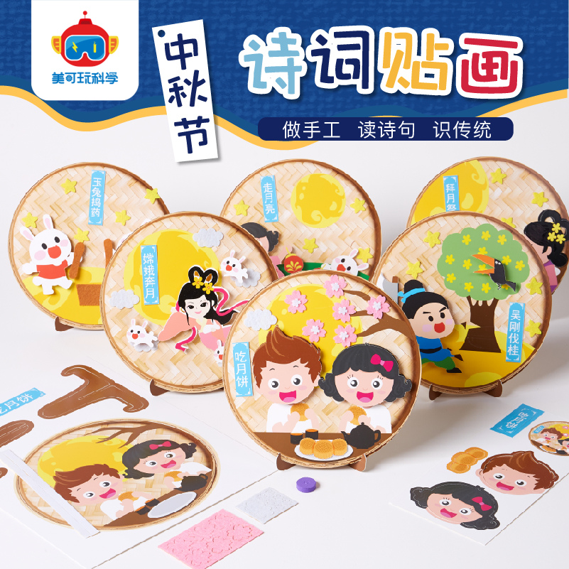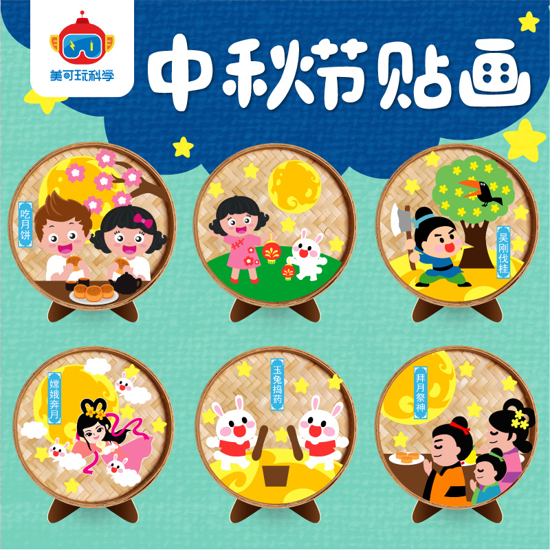 中秋节手工diy纸盘贴画作品儿童创意粘贴制作环创装饰幼儿园材料