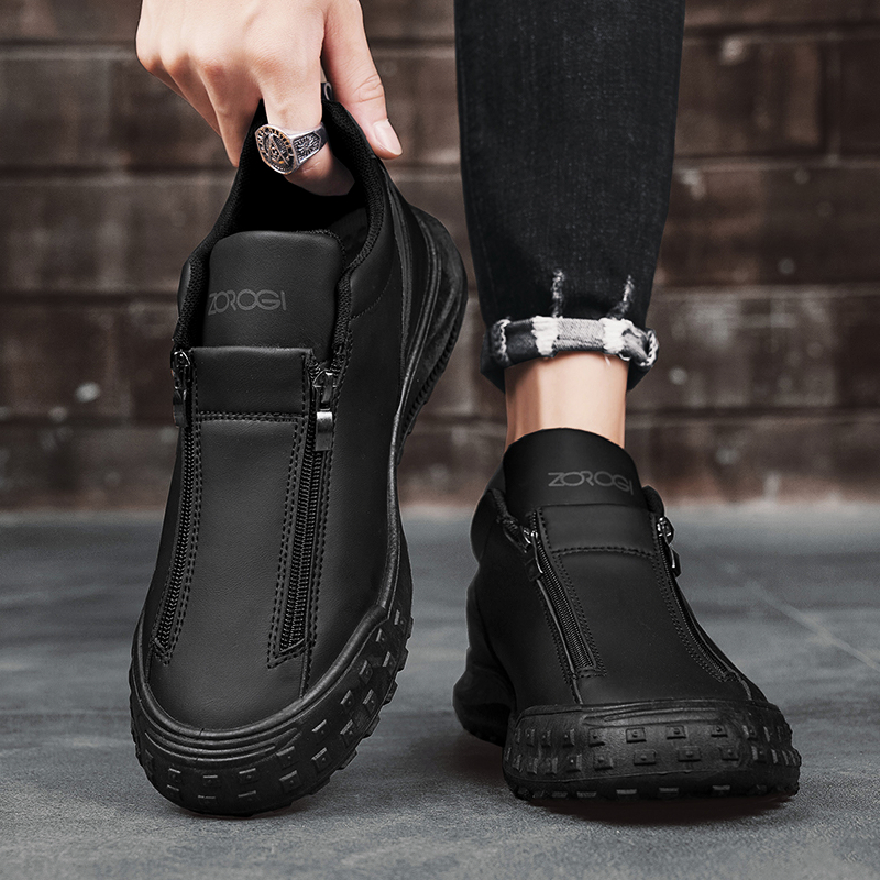 无鞋带男鞋秋季一脚蹬男士休闲皮鞋上班工作防水防滑运动劳保潮鞋
