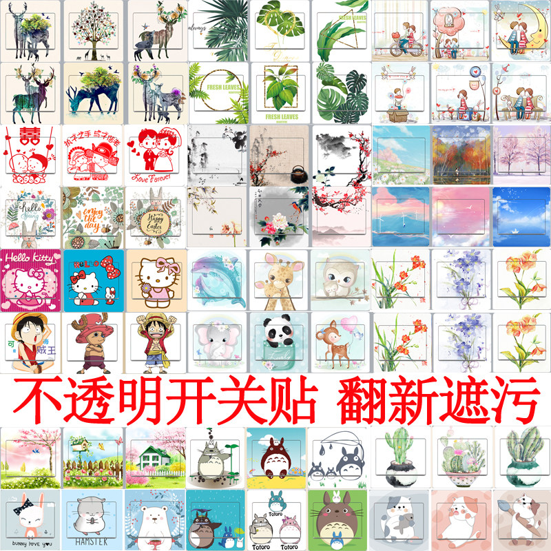 北欧文艺插画森系动物龙猫羽毛猫咪婚庆开关贴纸翻新装饰贴插座贴