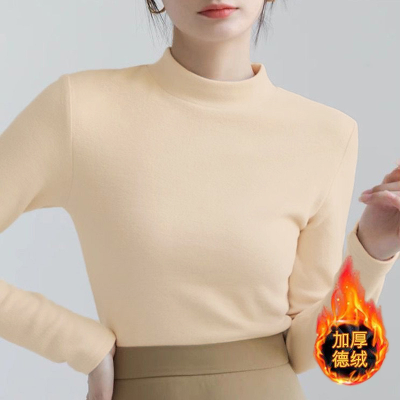 德绒半高领打底衫女士加厚加绒长袖T恤秋冬百搭修身内搭保暖上衣