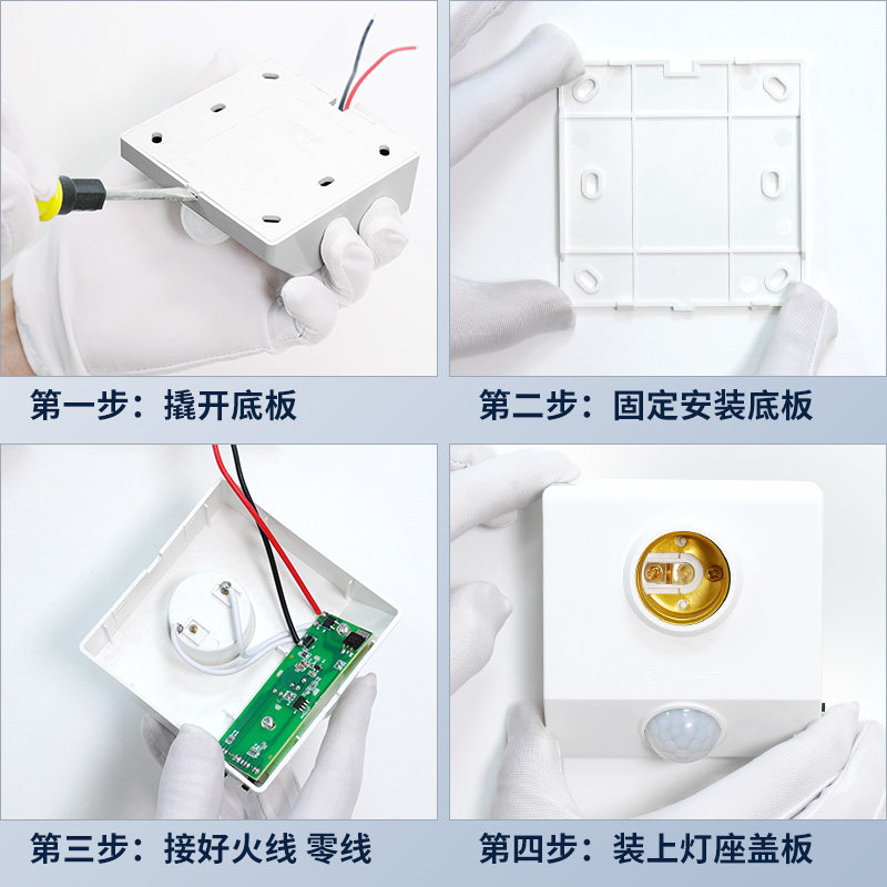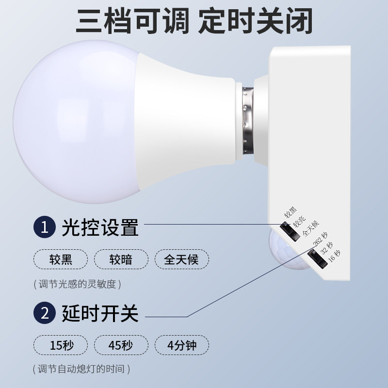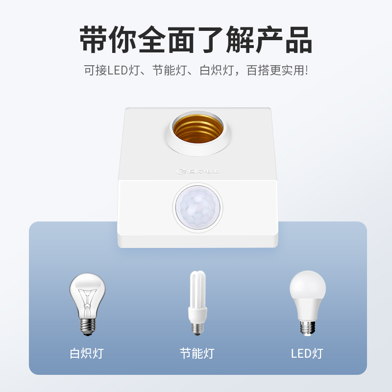 感应灯座led人体智能红外E27螺口节能自动灯头过道楼道走廊声光控