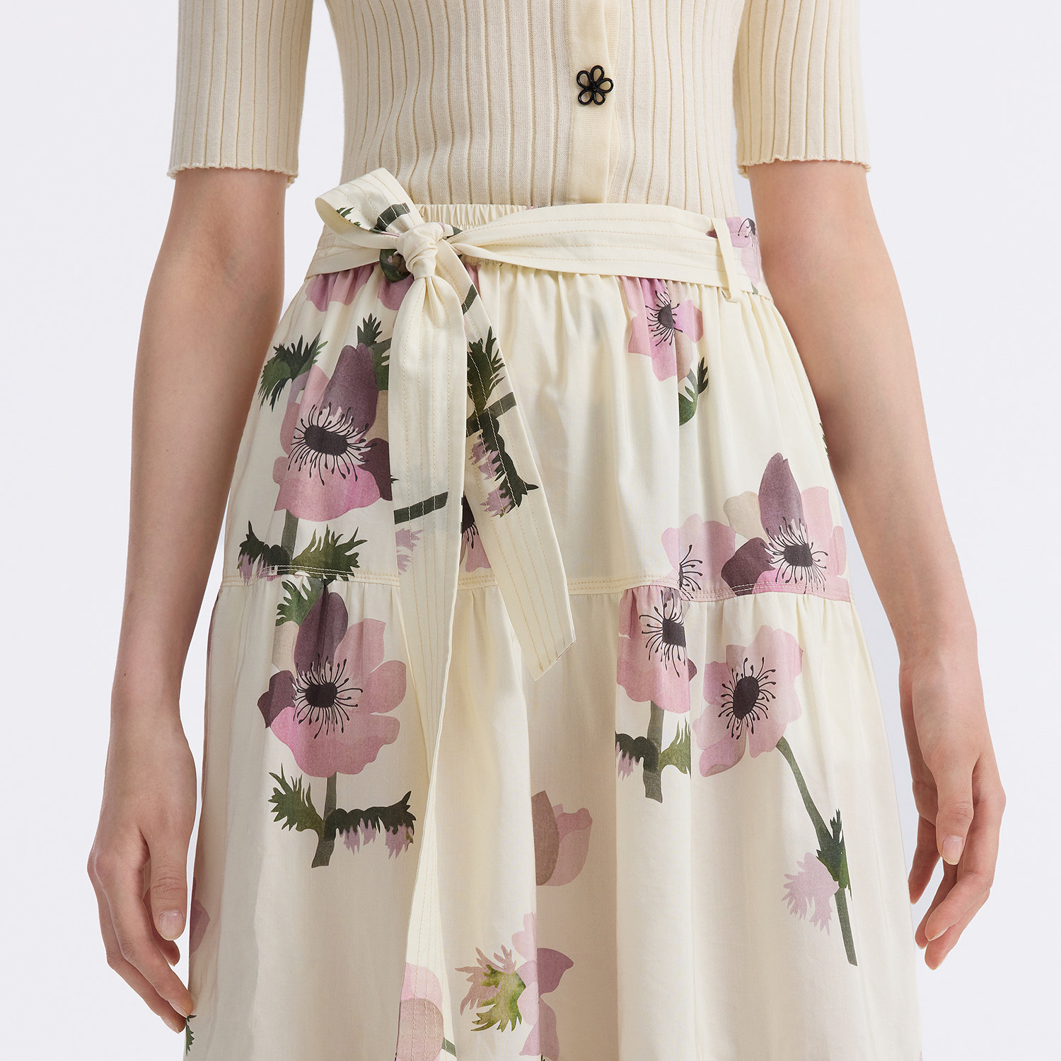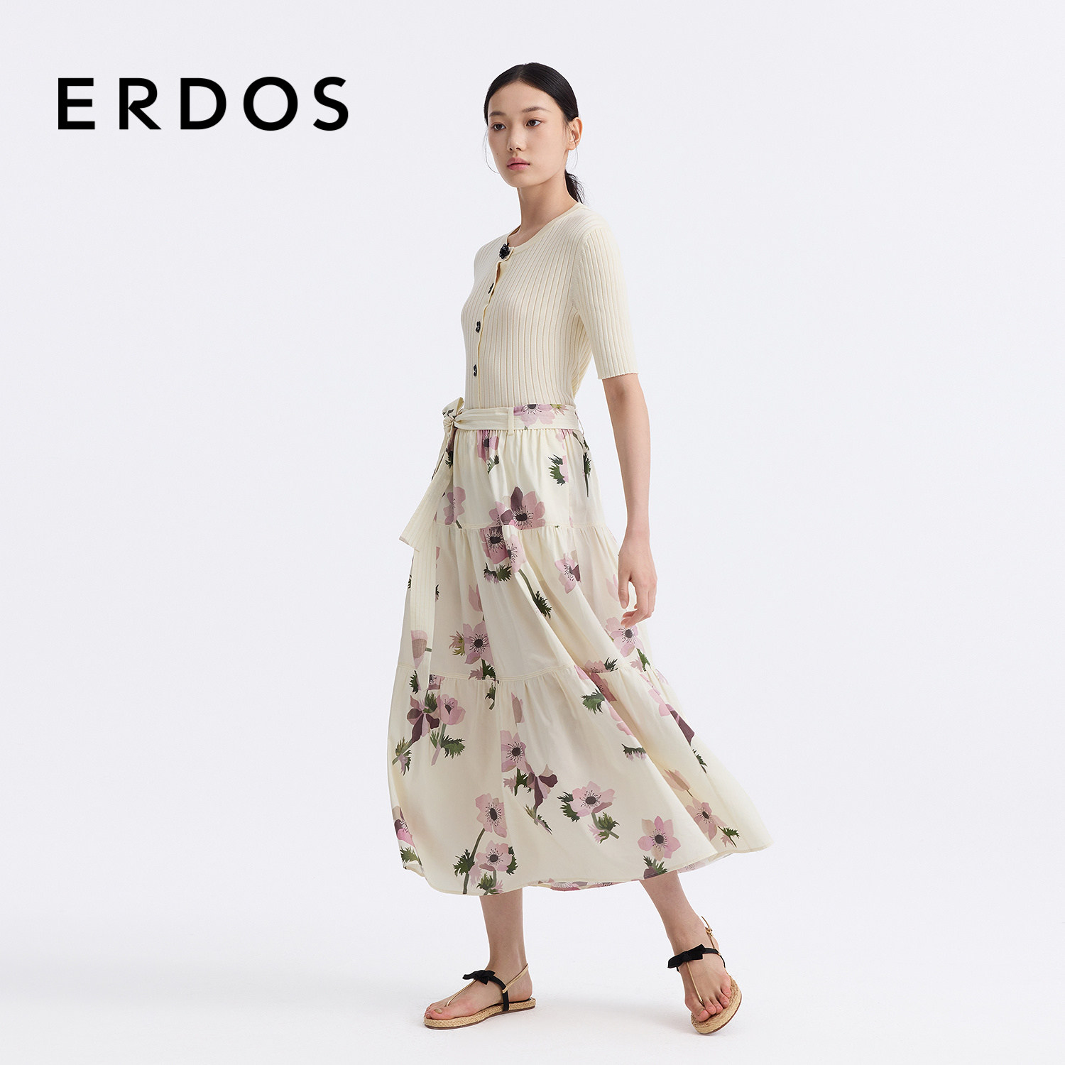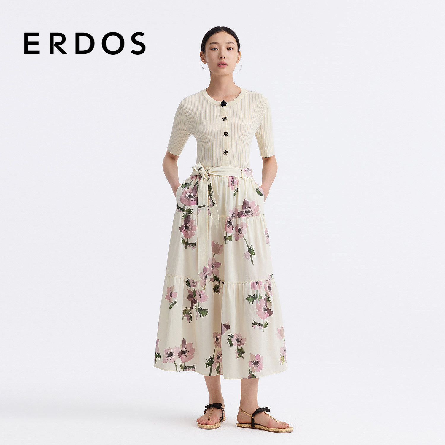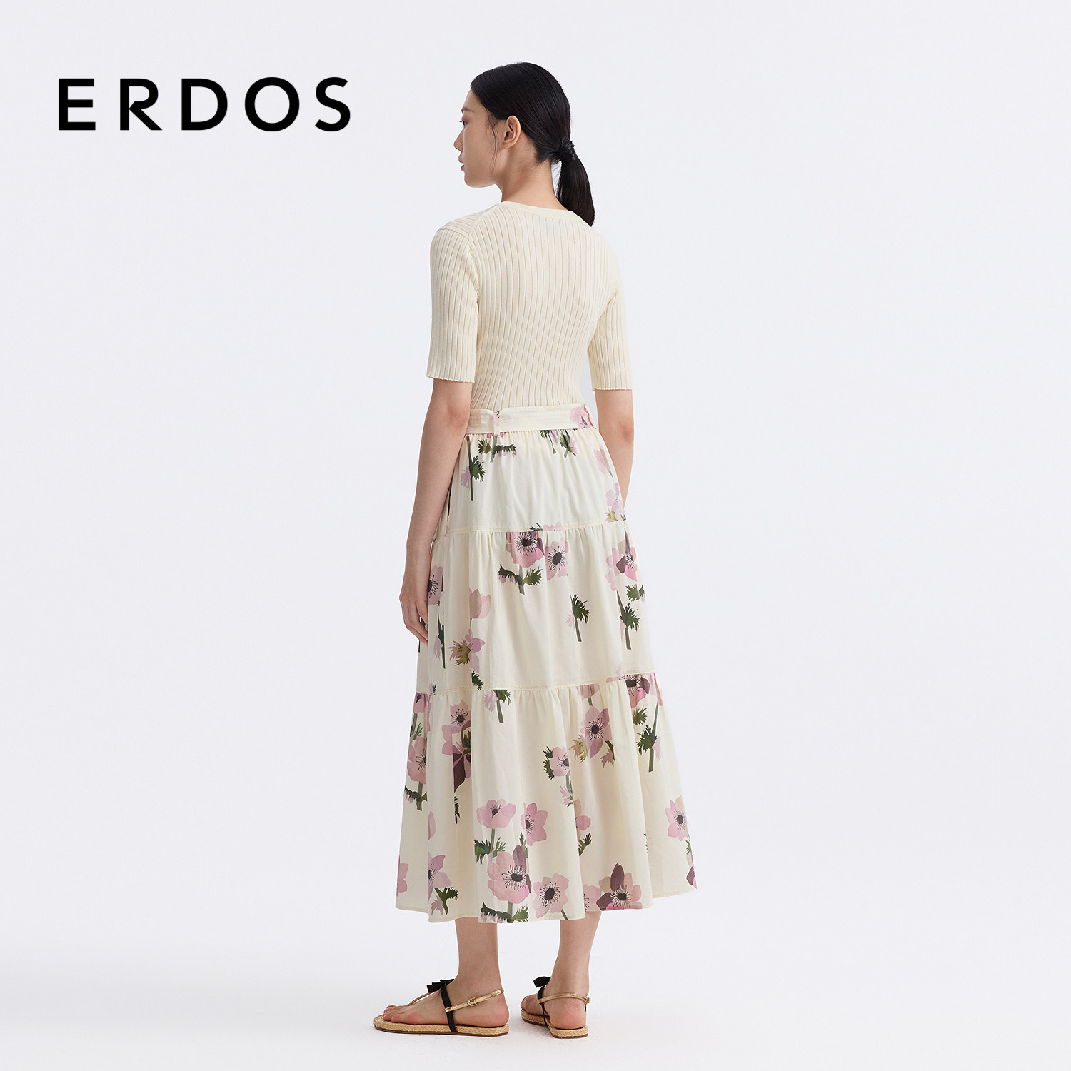 ERDOS 银莲花A字半身裙25年夏新品女丝棉混纺系带中长款蛋糕裙