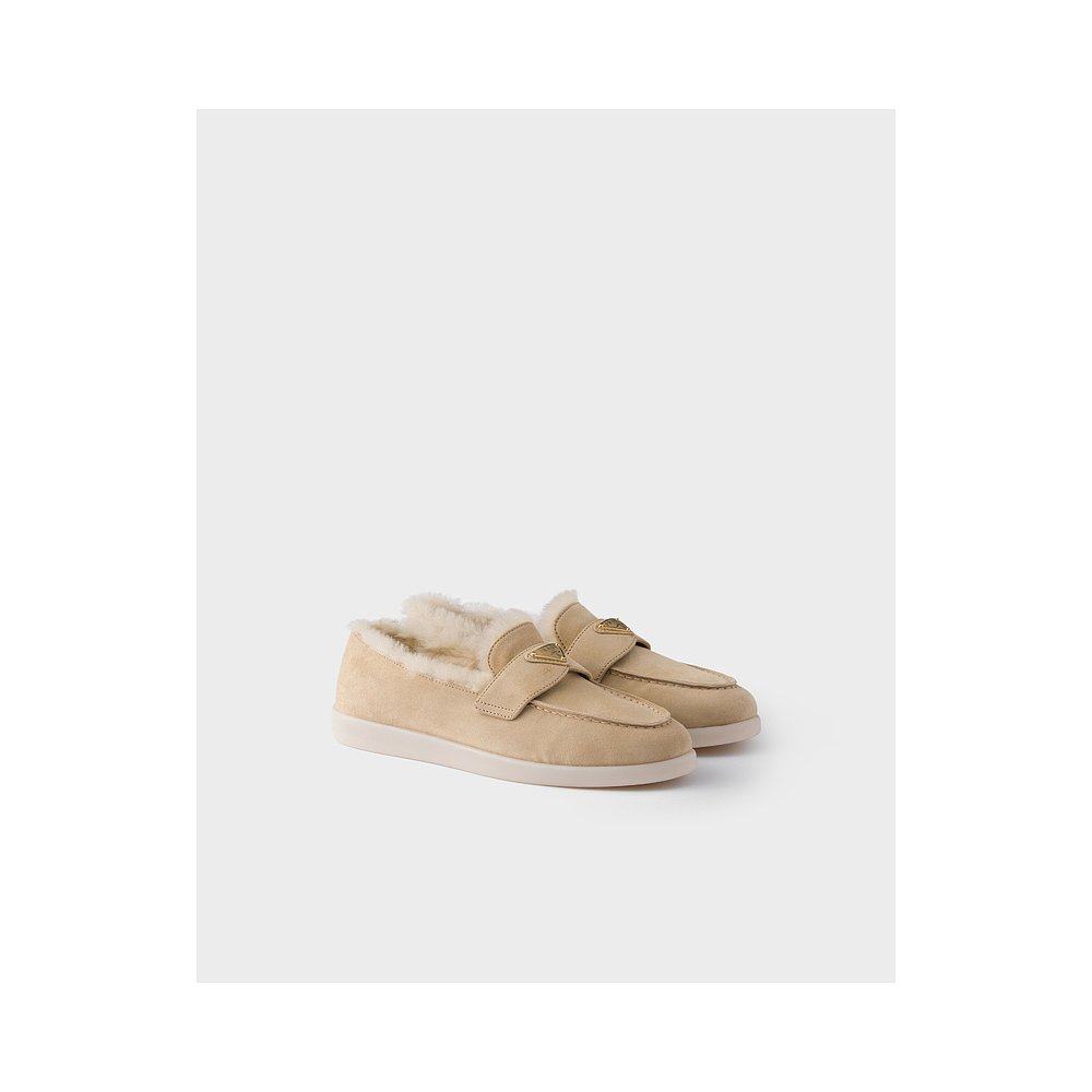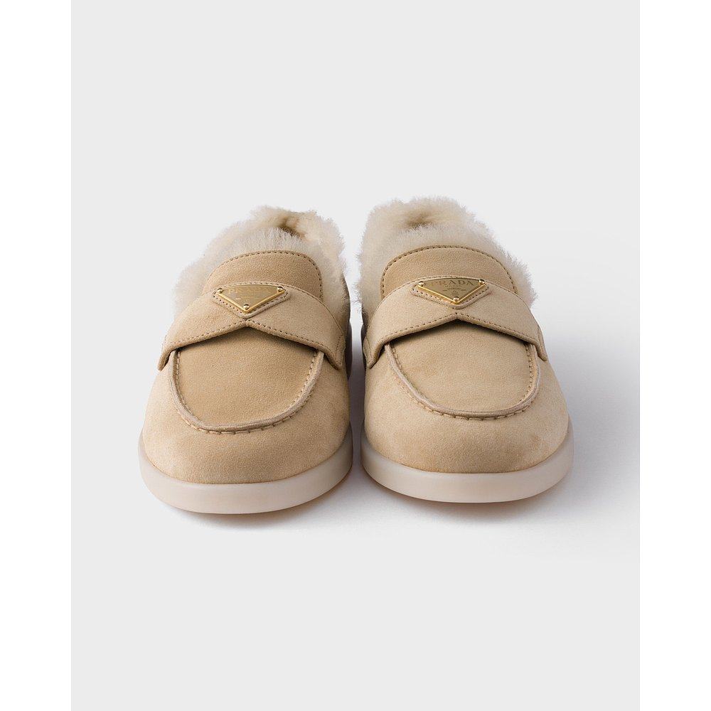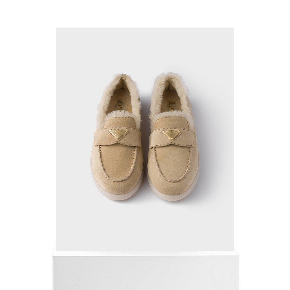 香港直邮Prada 绒面革和羊毛皮乐福鞋一脚蹬女鞋 1D222N3ZKPFZB25