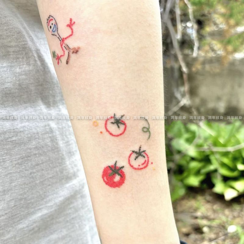 蜡笔手绘小番茄纹身贴ins风高颜值手臂脚腕持久防水甜酷辣妹贴纸
