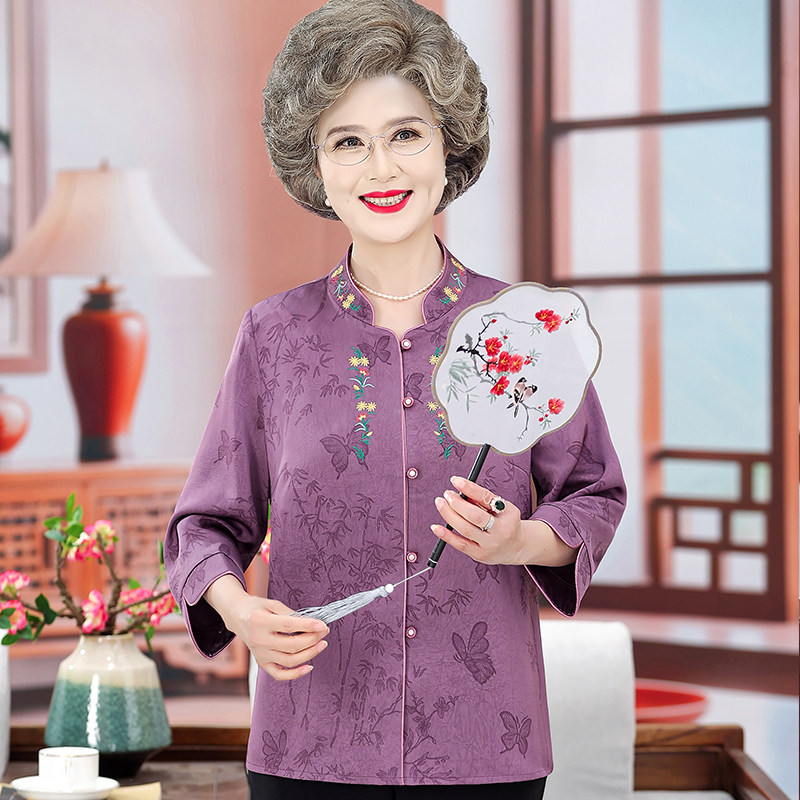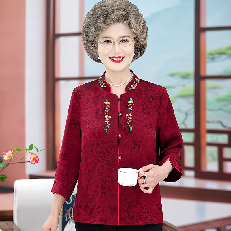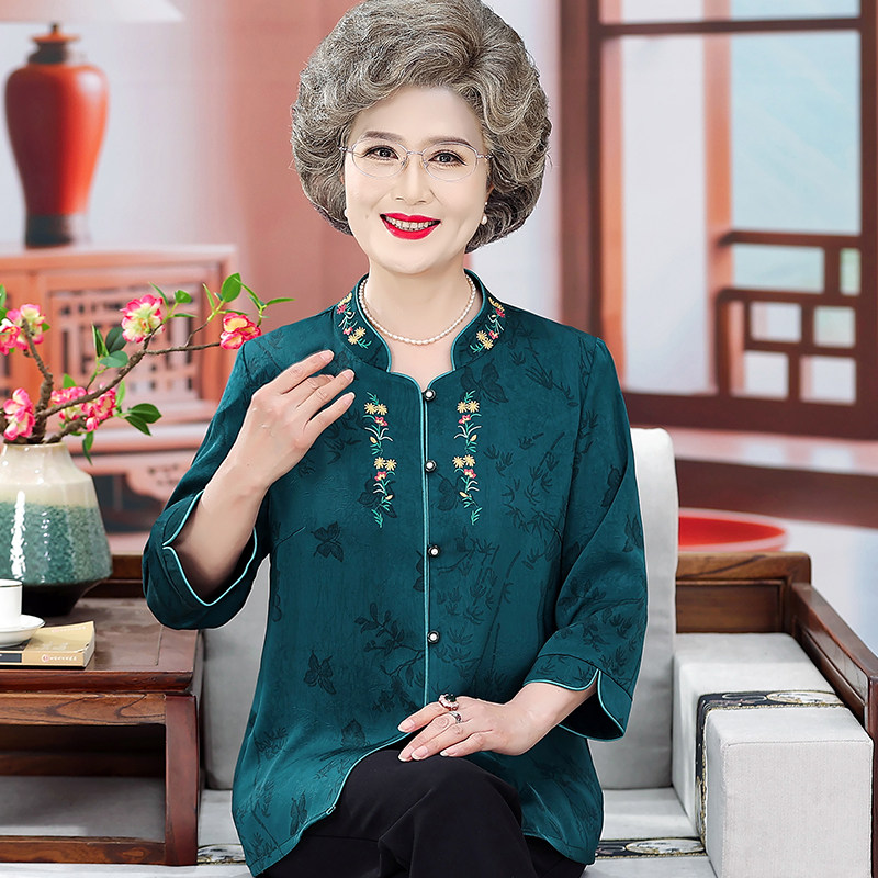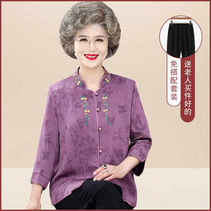 老年人夏装女新款衬衫奶奶装衬衣老太太喜婆婆婚礼装老人妈妈上衣