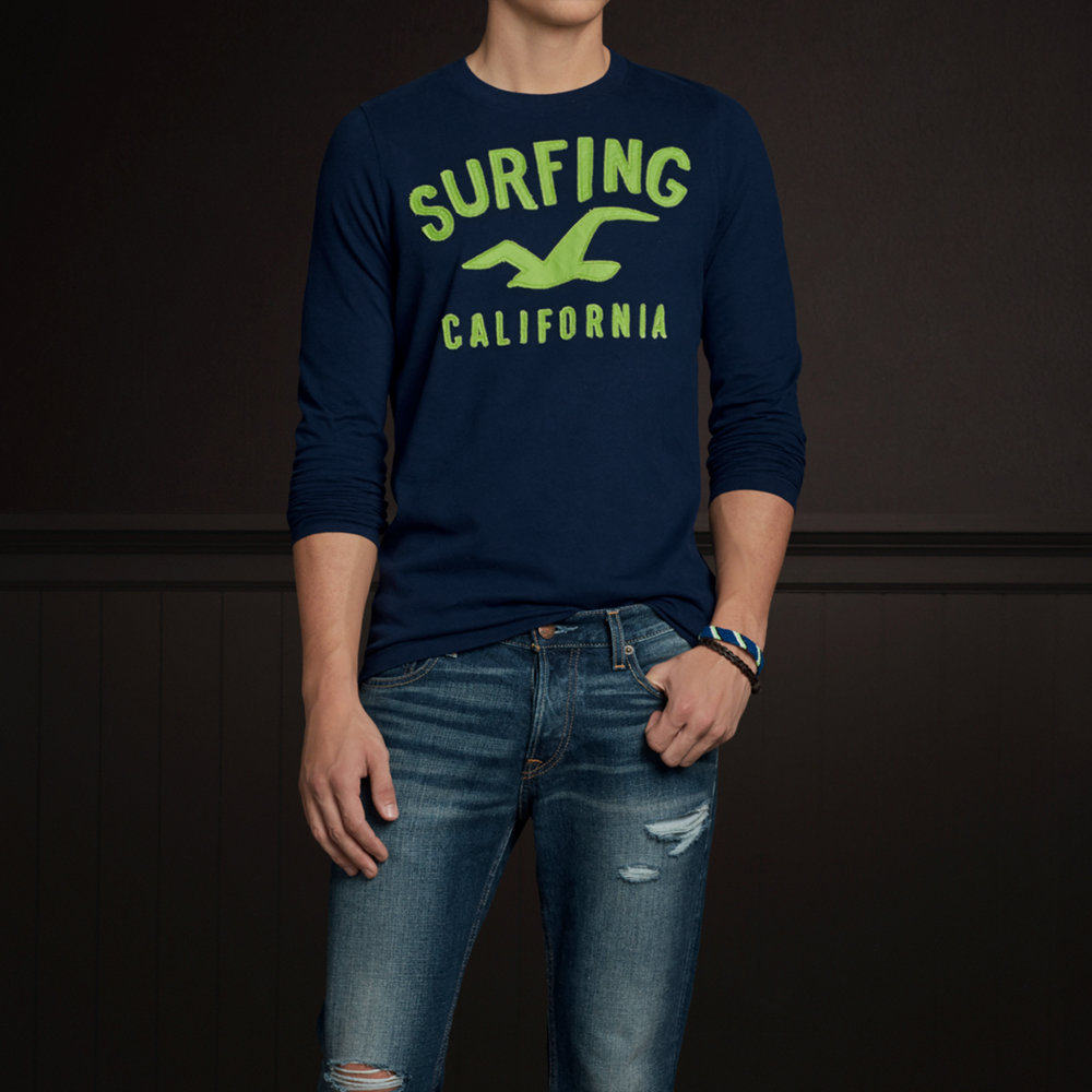 国内现货美国af副牌Hollister正品HCO男长袖圆领打底衫休闲T恤
