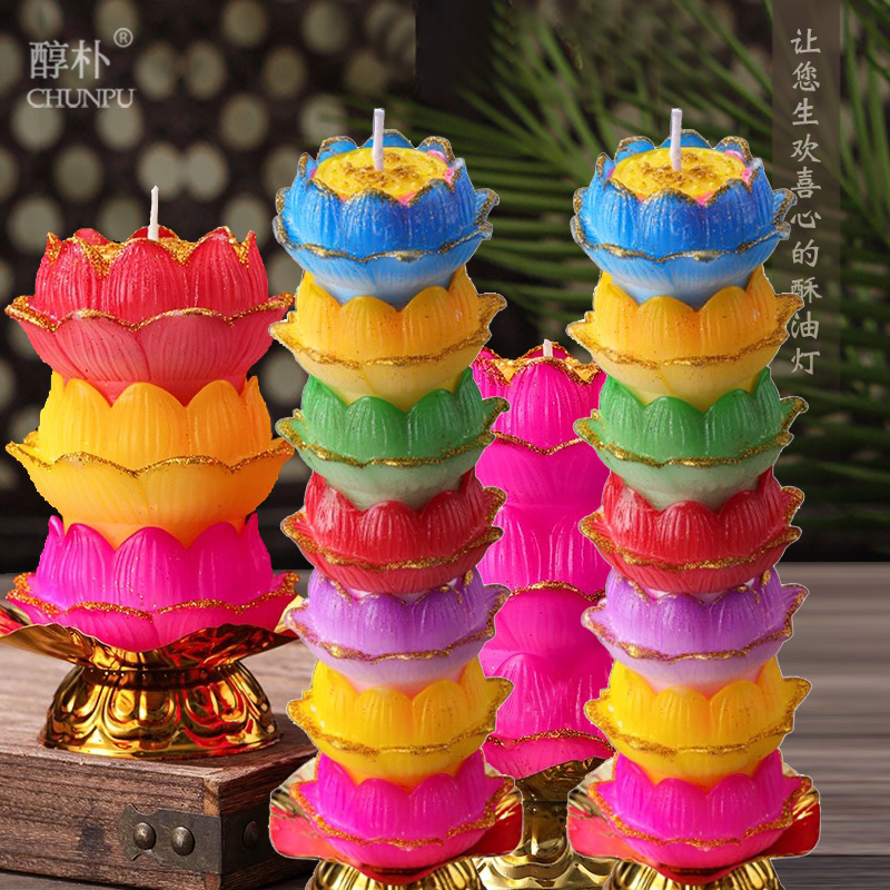 多层吉祥莲花塔蜡烛观音还愿蜡烛无烟无异味过年家用彩色供佛灯