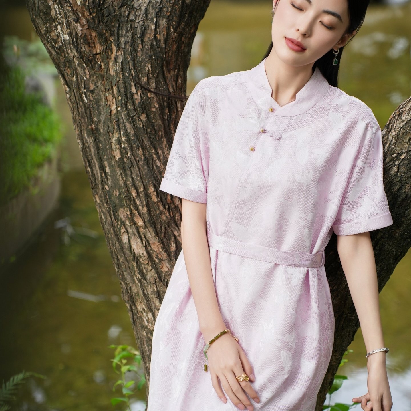【桑蚕丝 三经绞罗】觅萝香铁木机半手工 色织蝶恋花新式旗袍裙