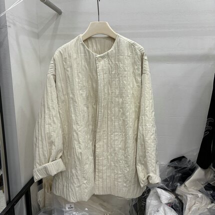 chumo高级欧货2025秋冬新款轻薄棉服显瘦圆领单排扣中长款外套女