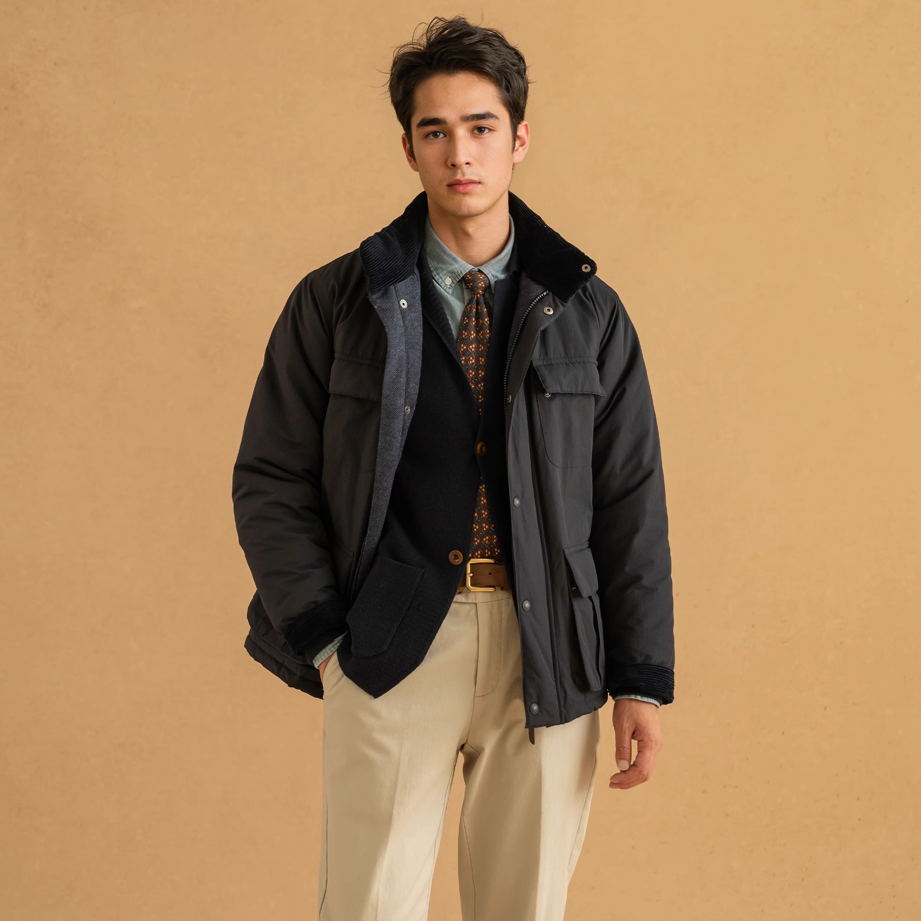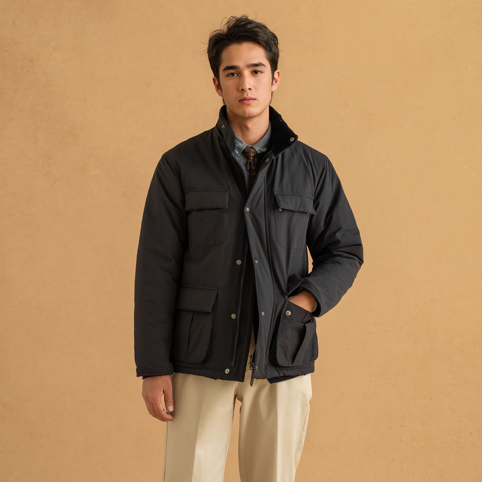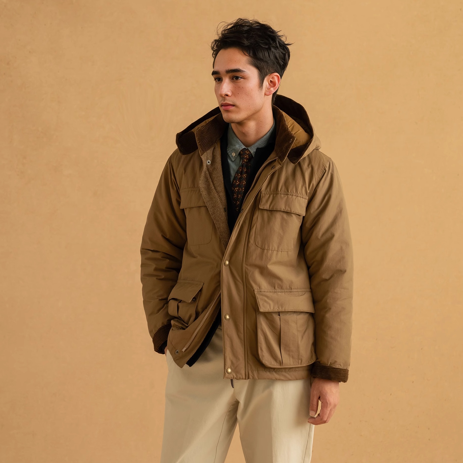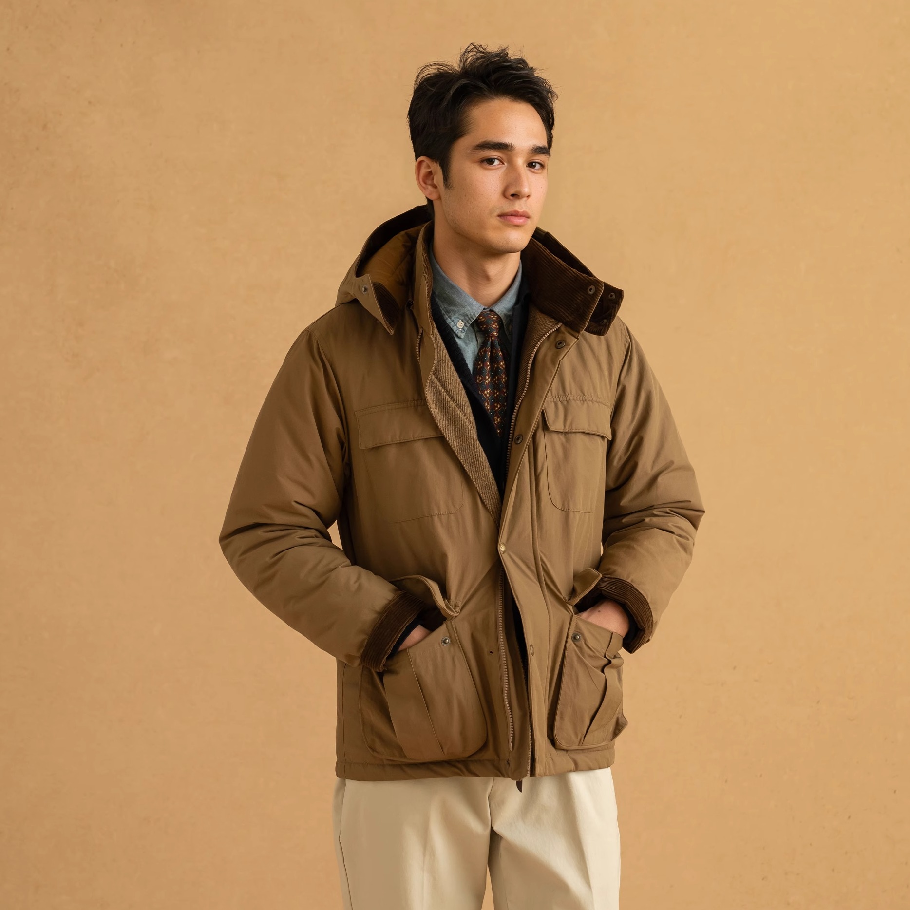 PUPP24Vintage猎装多袋拼布连帽户外男士棉服夹克外套冬季男棉衣