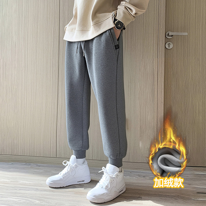 纯棉加绒运动裤男冬季加厚外穿裤子宽松休闲裤棉裤秋冬款束脚卫裤