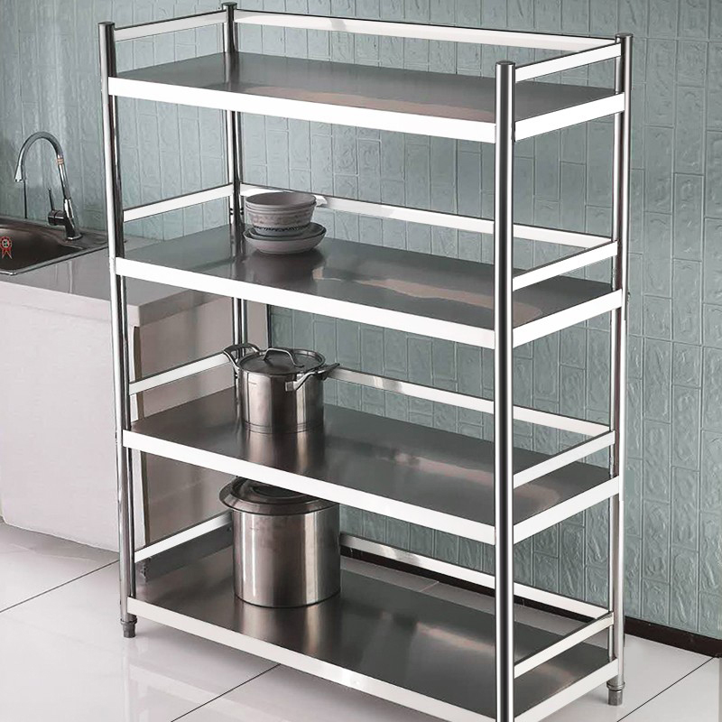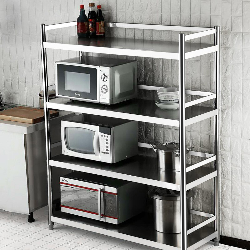 带围栏不锈钢厨房置物架落地多层4微波炉收纳家用锅架子储物护栏3