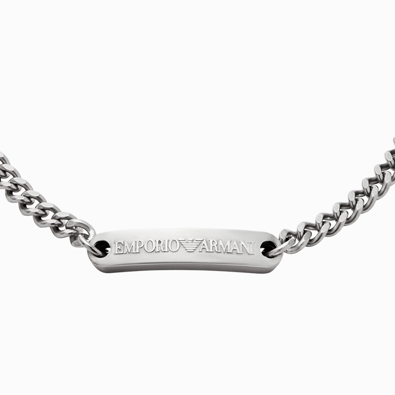 EMPORIO ARMANI/阿玛尼男士矩形铭牌素色钢质龙虾扣时尚潮流手链