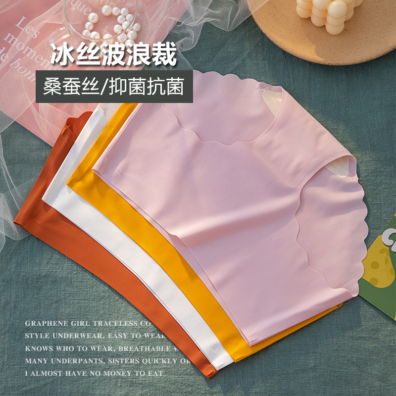无痕透气桑蚕丝底档抑菌一片式内裤女甜美中腰冰丝日系三角裤夏季