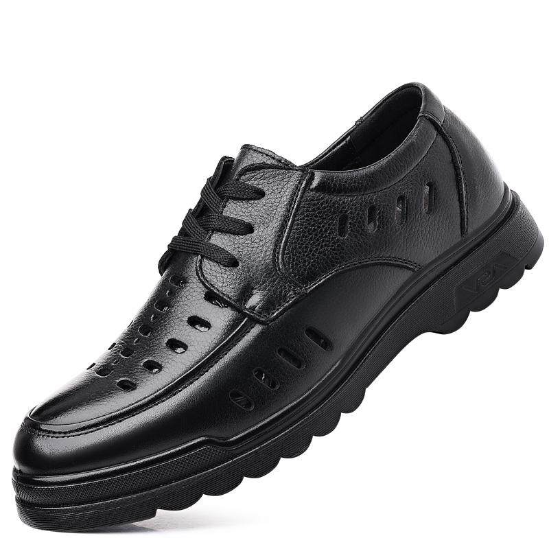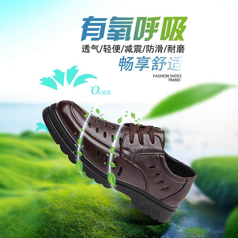 啄木鸟凉鞋男夏季真皮休闲皮鞋男士头层牛皮镂空洞洞鞋软底爸爸鞋