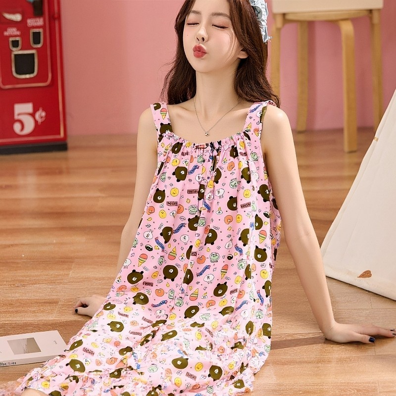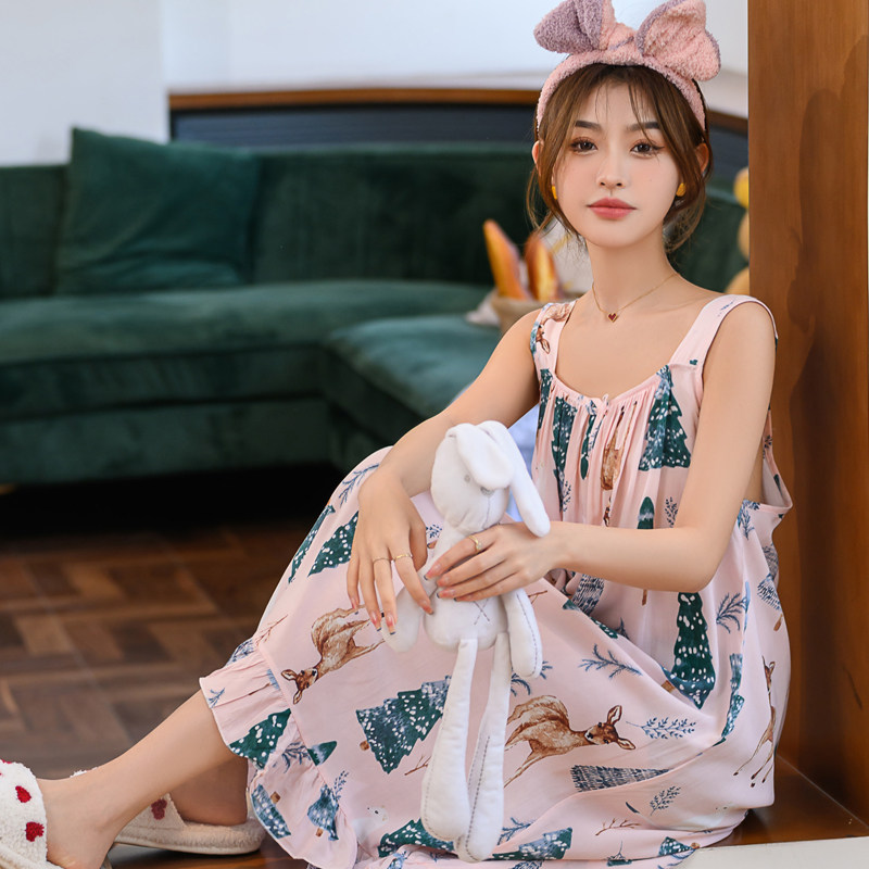 怡伴韩版可爱少女吊带睡裙女夏人造棉学生薄款连衣裙家居服