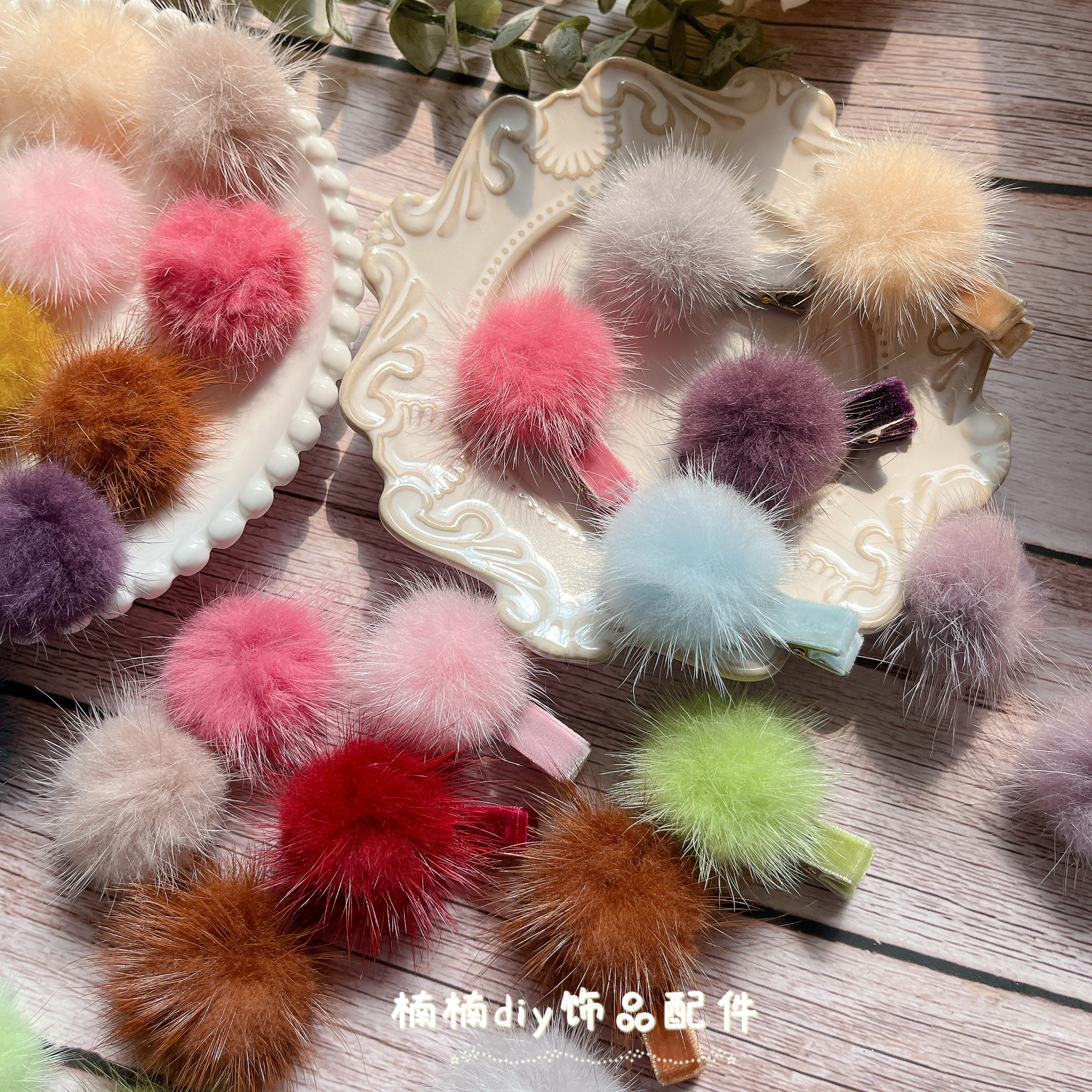秋冬款韩版洋气彩色系水貂毛球毛绒球diy手工儿童发饰材料配饰